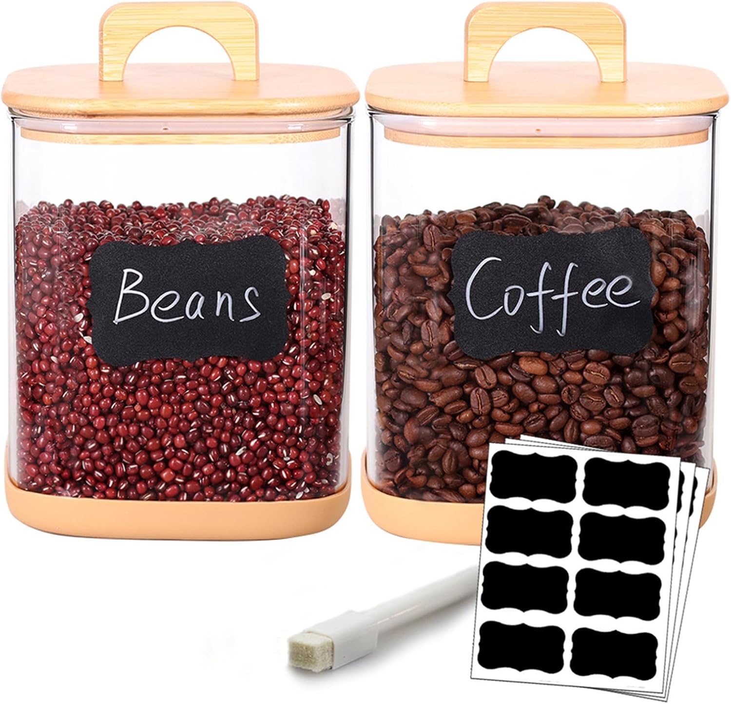 • 【Thickened See-through Glass Jars】 Our large glass storage jars is made of upgraded food-grade 3.3mm borosilicate glass, clear glass jars with wood lids make your contents easily to be seen at a glance.