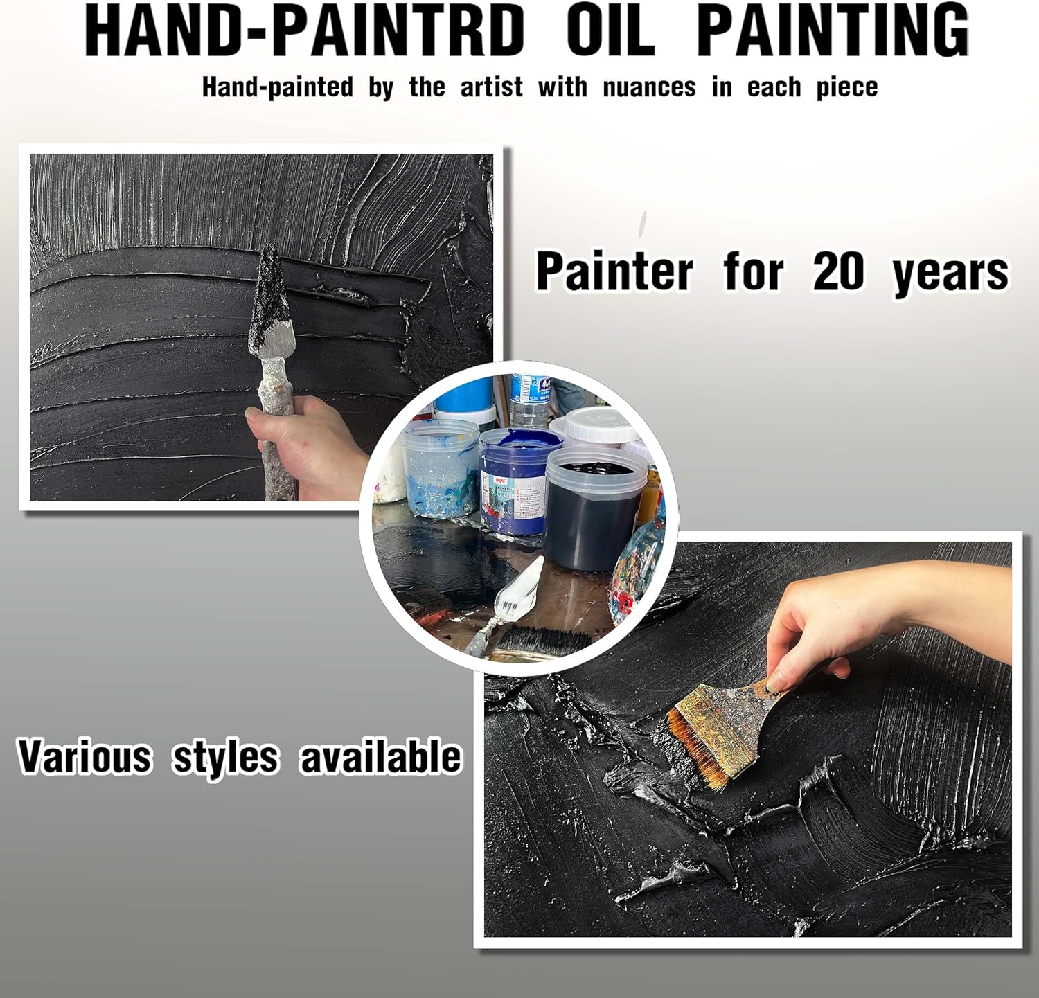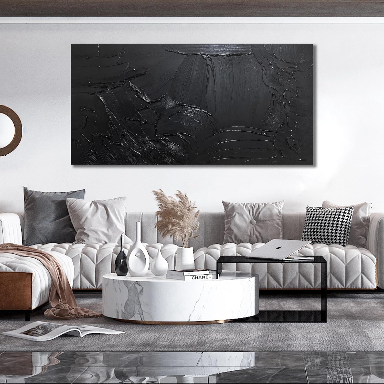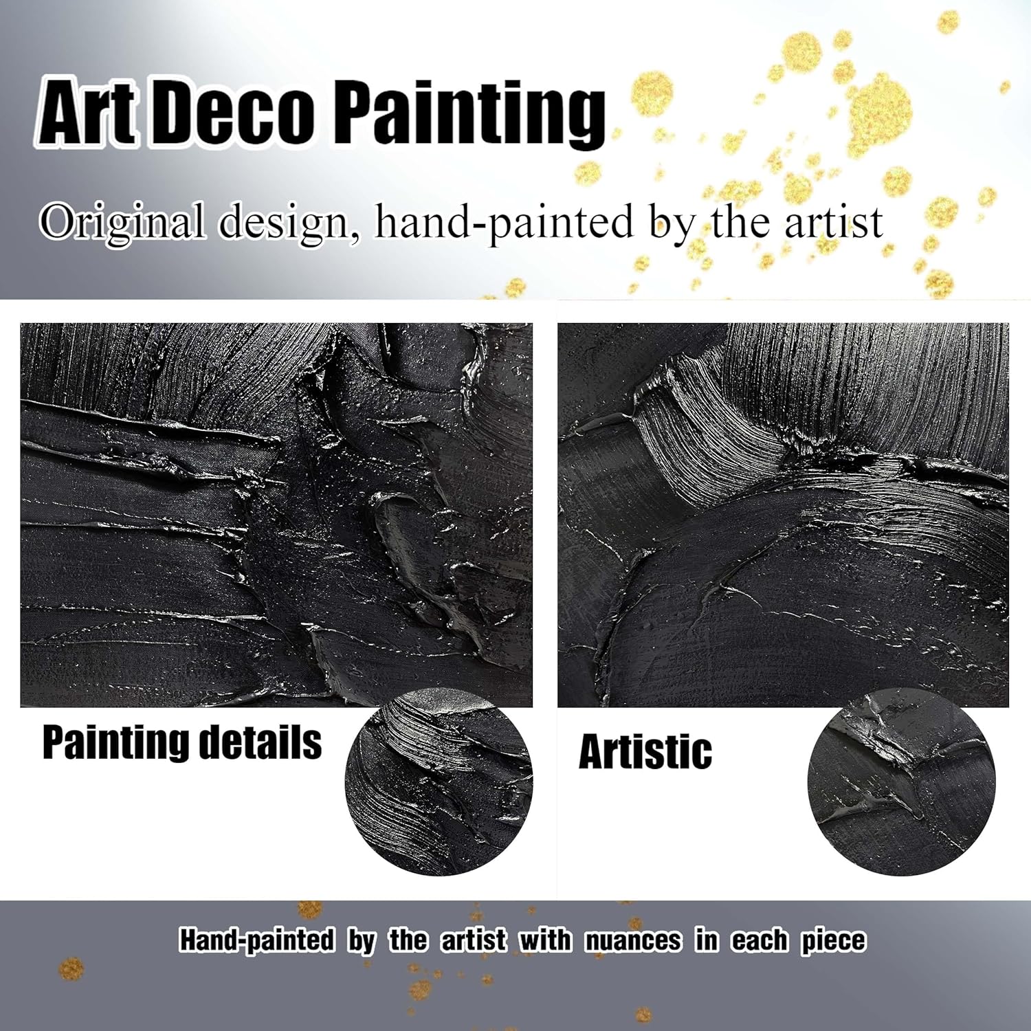 • 【Black Abstract Canvas Mural Size】The size is 72" x 36". Since each painting is hand-painted, 3D textured canvases, the actual painting may differ slightly from the product image. Due to different monitor brands, the actual wall painting color may be slightly different from the product picture.