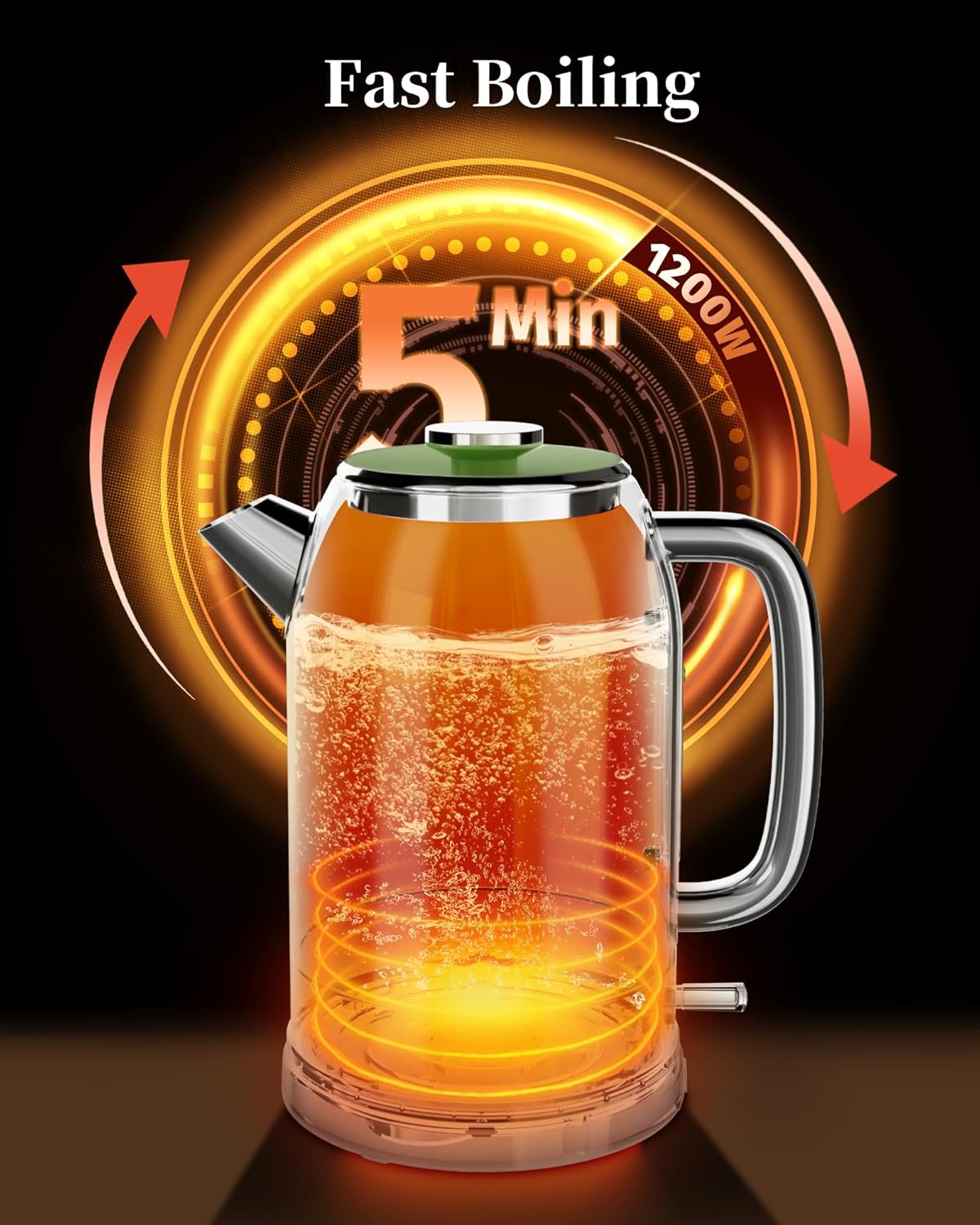 • 1.8L Large Capacity, Ideal for Families: The 1.8L large capacity allows you to boil enough water for families, gatherings, or multiple servings of tea or coffee. 1200W power ensures fast boiling, allowing you to get hot water in just a few minutes without needing to refill frequently