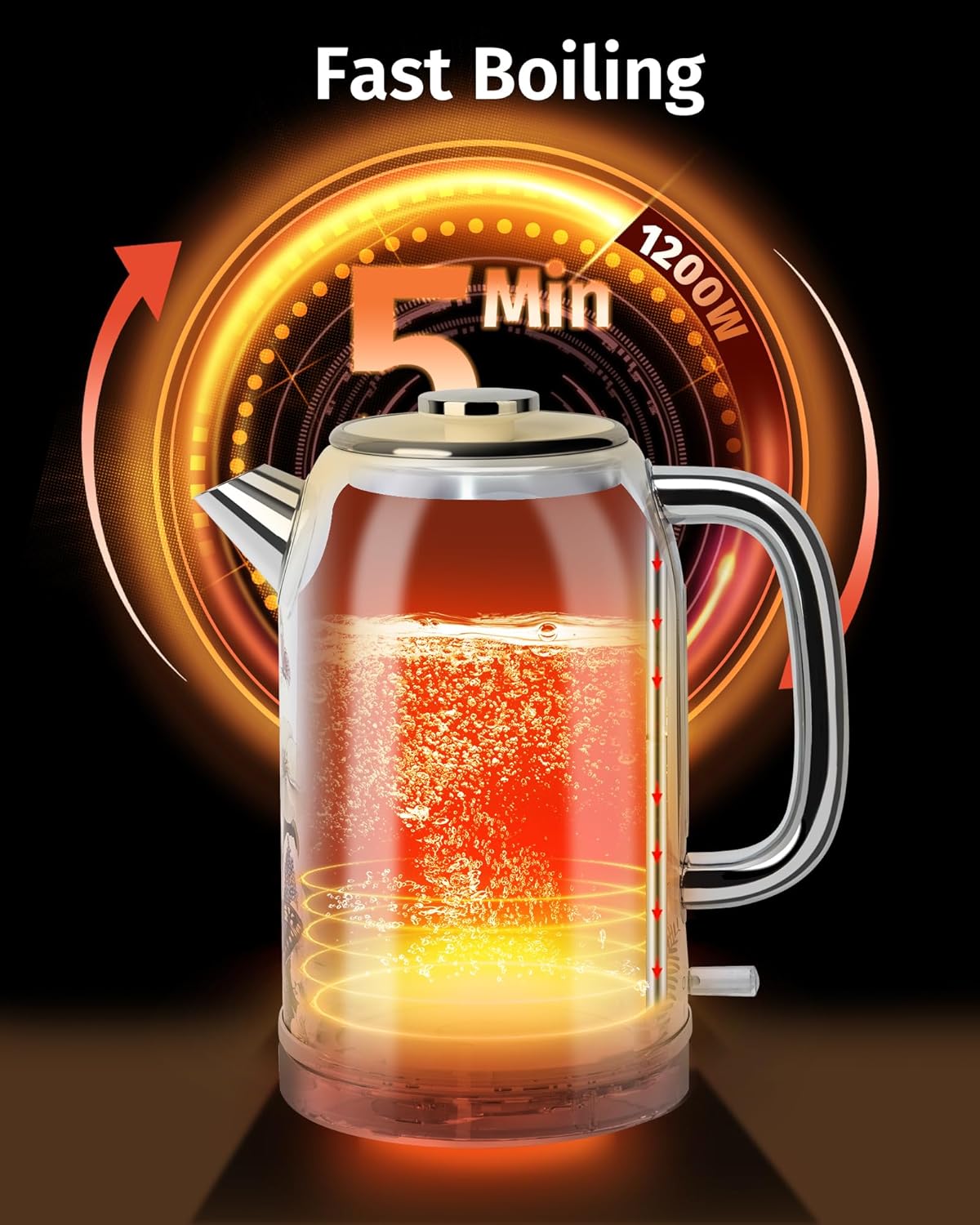 • 1.8L Large Capacity, Ideal for Families: The 1.8L large capacity allows you to boil enough water for families, gatherings, or multiple servings of tea or coffee. 1200W power ensures fast boiling, allowing you to get hot water in just a few minutes without needing to refill frequently