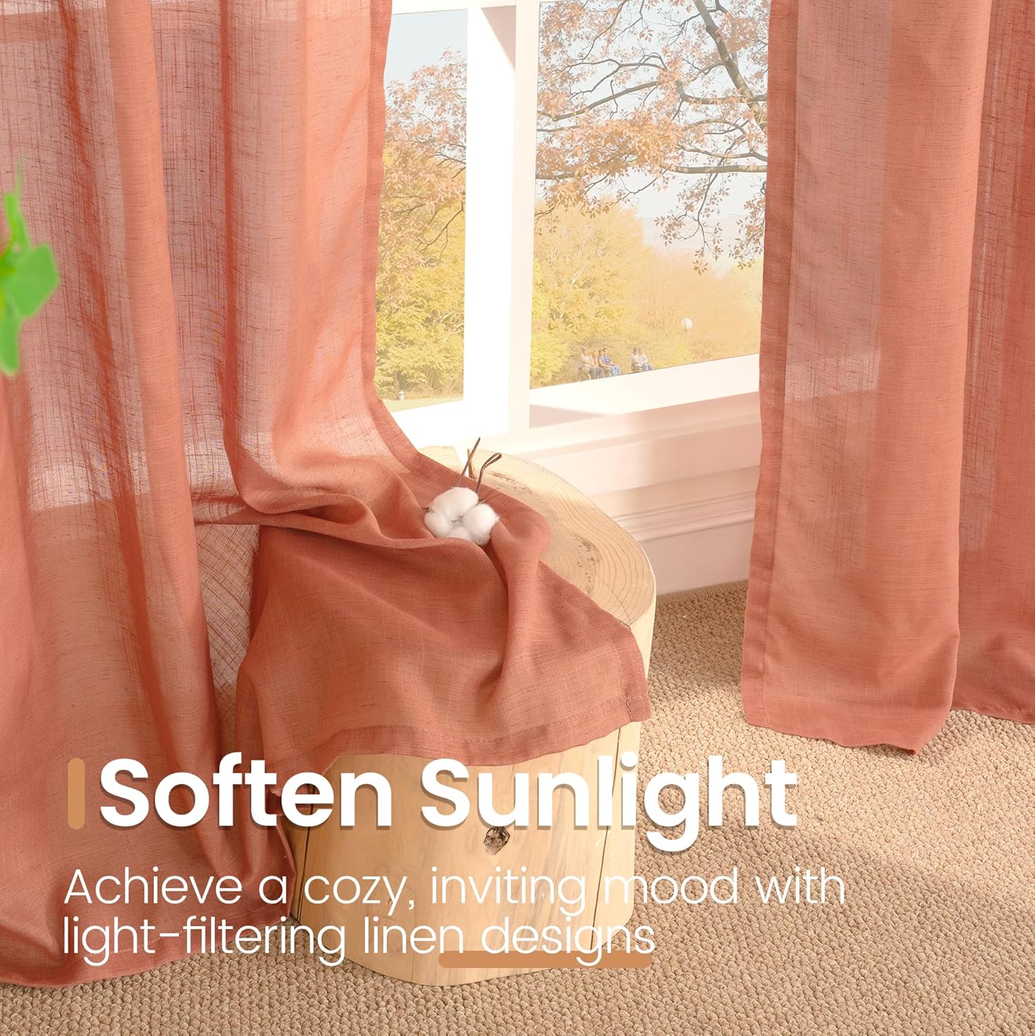 BGment Rust Terracotta Linen Curtains 63 Inches Long for Living Room, Burnt Orange Semi Sheer Window Drapes with Rod Pocket Lightweight for Bedroom, 2 Panels Set, Each 52 Inch Wide