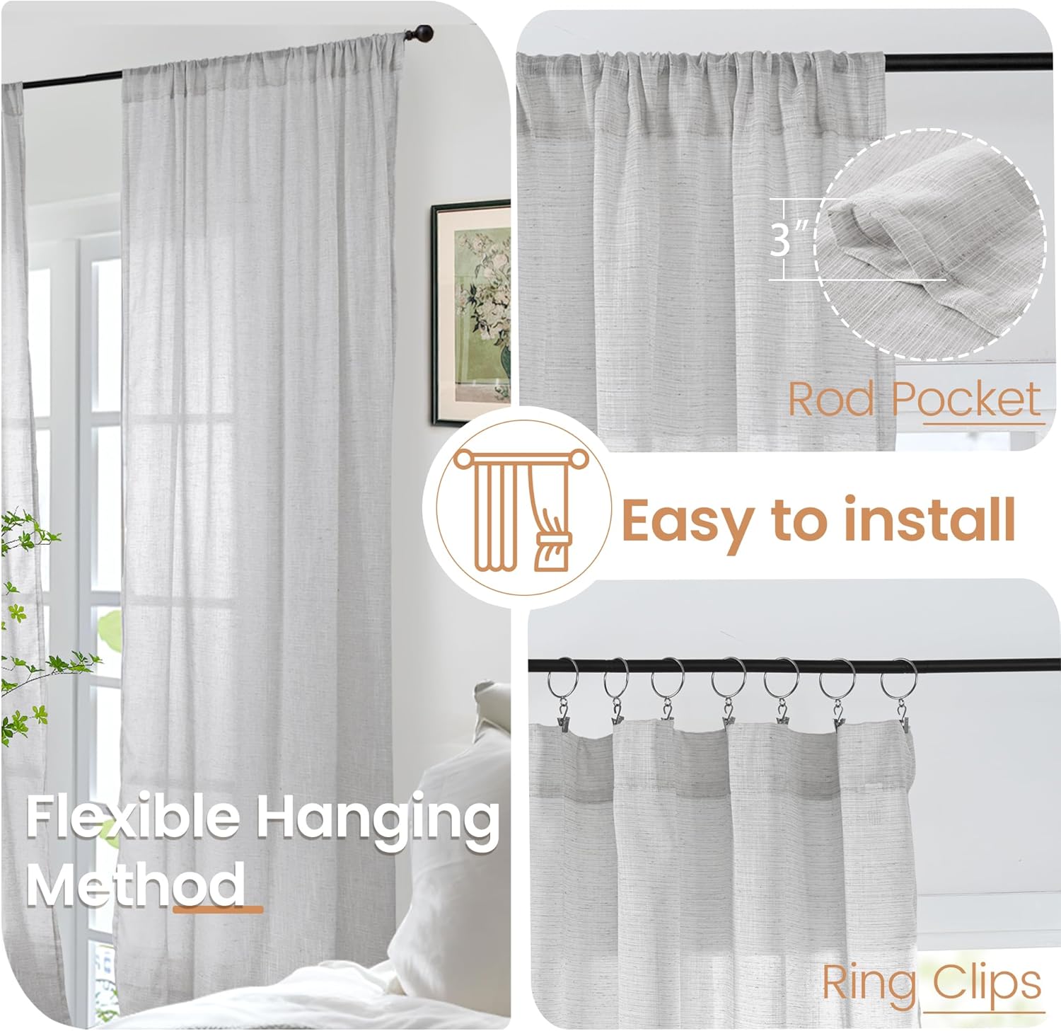 • PACKAGE INCLUDES: Each package includes set of 2 natural linen curtains. Each panel is 84 inches long and 42 inches width (total 84 inches long and 84 inches length), with 3 inches rod pocket on top, fits most standard rods and makes the maximize coverage of your windows