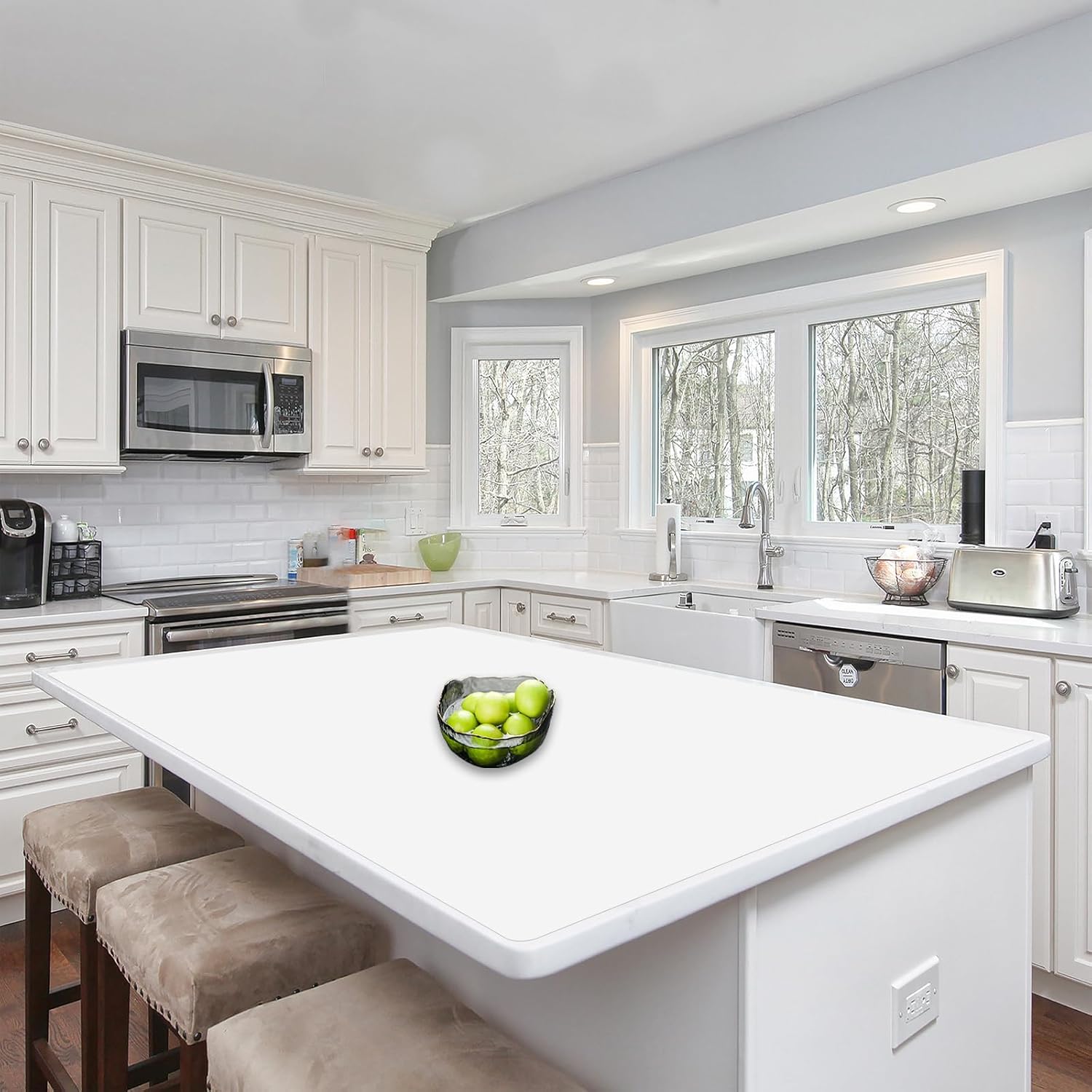 Silicone Mats for Kitchen Counter, 48"x32"(120cmx80cm) Large Heat Resistant Mat Kitchen Island Waterproof Countertop Protector Mat Nons-slip Extra Large Counter Mat, Semitransparent