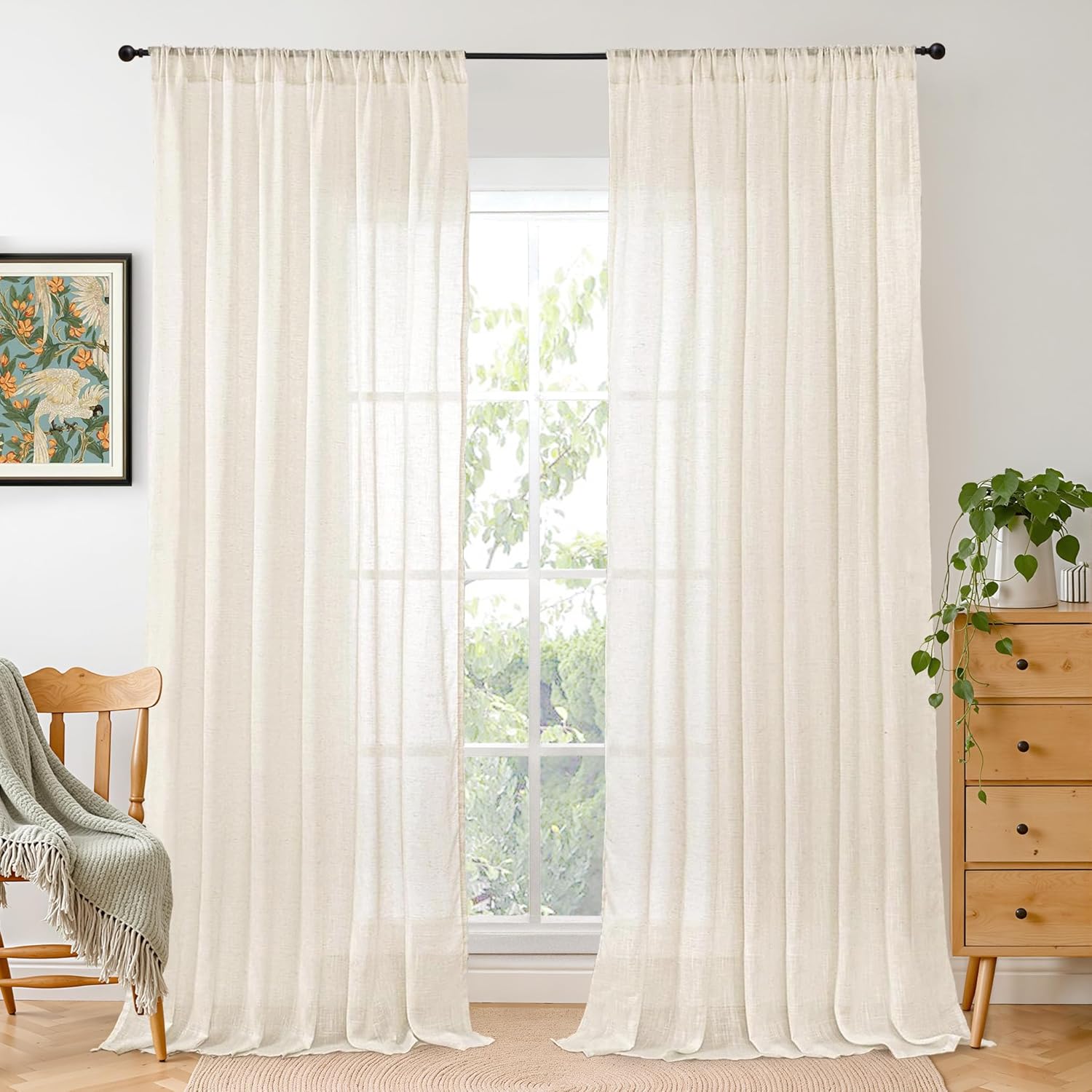 • PACKAGE INCLUDES: Each package includes set of 2 natural linen curtains. Each panel is 84 inches long and 60 inches width (total 84 inches long and 120 inches length), with 3 inches rod pocket on top, fits most standard rods and makes the maximize coverage of your windows