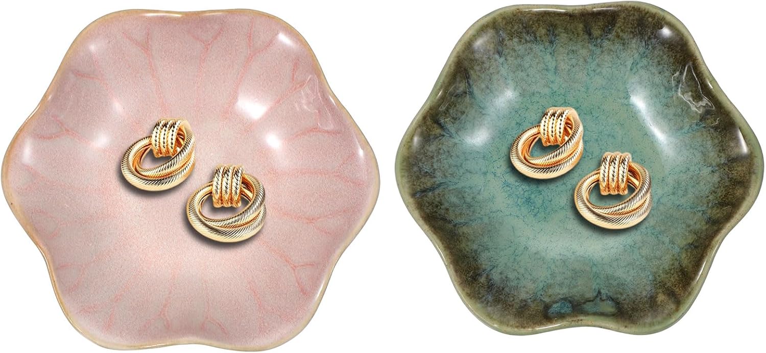 uxcell 2Pcs Ceramics Jewelry Plate, Lotus Leaf Shape Key Holder Bowl for Entryway Table Decor Small Ring Tray Dish Gift for Women Girlfriend, Pink/Green
