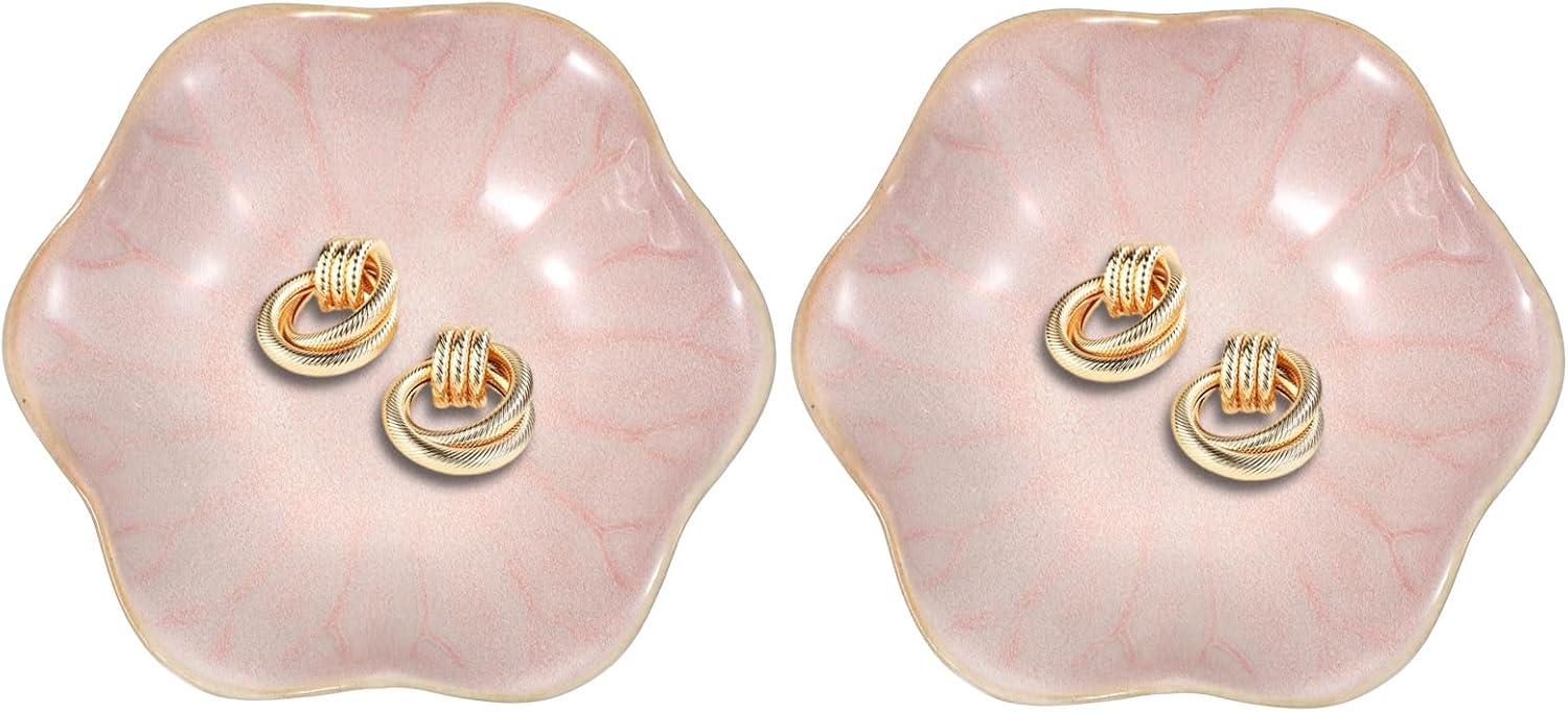 uxcell 2Pcs Ceramics Jewelry Plate, Lotus Leaf Shape Key Holder Bowl for Entryway Table Decor Small Ring Tray Dish Gift for Women Girlfriend, Pink