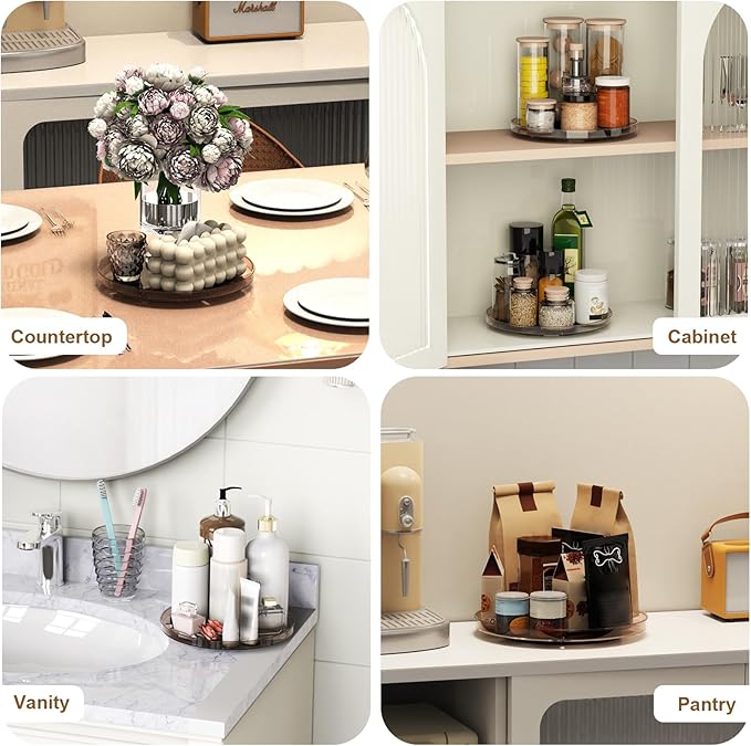 • Multi-Purpose Use: The turntable organizer perfect as spice rack, cosmetic organizer, perfume display holder and coffee table stand. Suitable for any space in the home, such as kitchen, refrigerator, bathroom, vanity, pantry, etc.