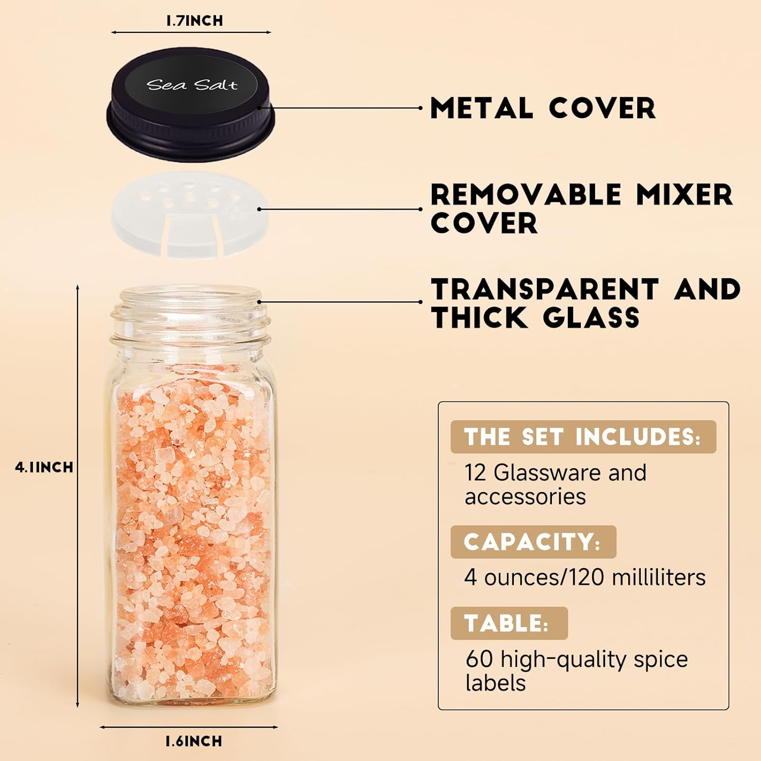 • 【Premium food-grade glass】Spice jars with label are made of thick, food-grade glass that won't break easily. The square design keeps the glass spice jars from tipping and rolling on the countertop. Highly transparent glass allows you to see the spices clearly.