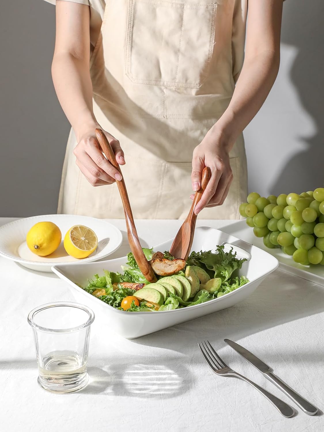 • Convenient Built-In Handles: Designed for effortless entertaining, our white serving bowls feature integrated handles for secure, comfortable transport from kitchen to table. The streamlined handles not only provide practical functionality but also enhance your presentation, naturally guiding guests' attention to the delicious contents within.