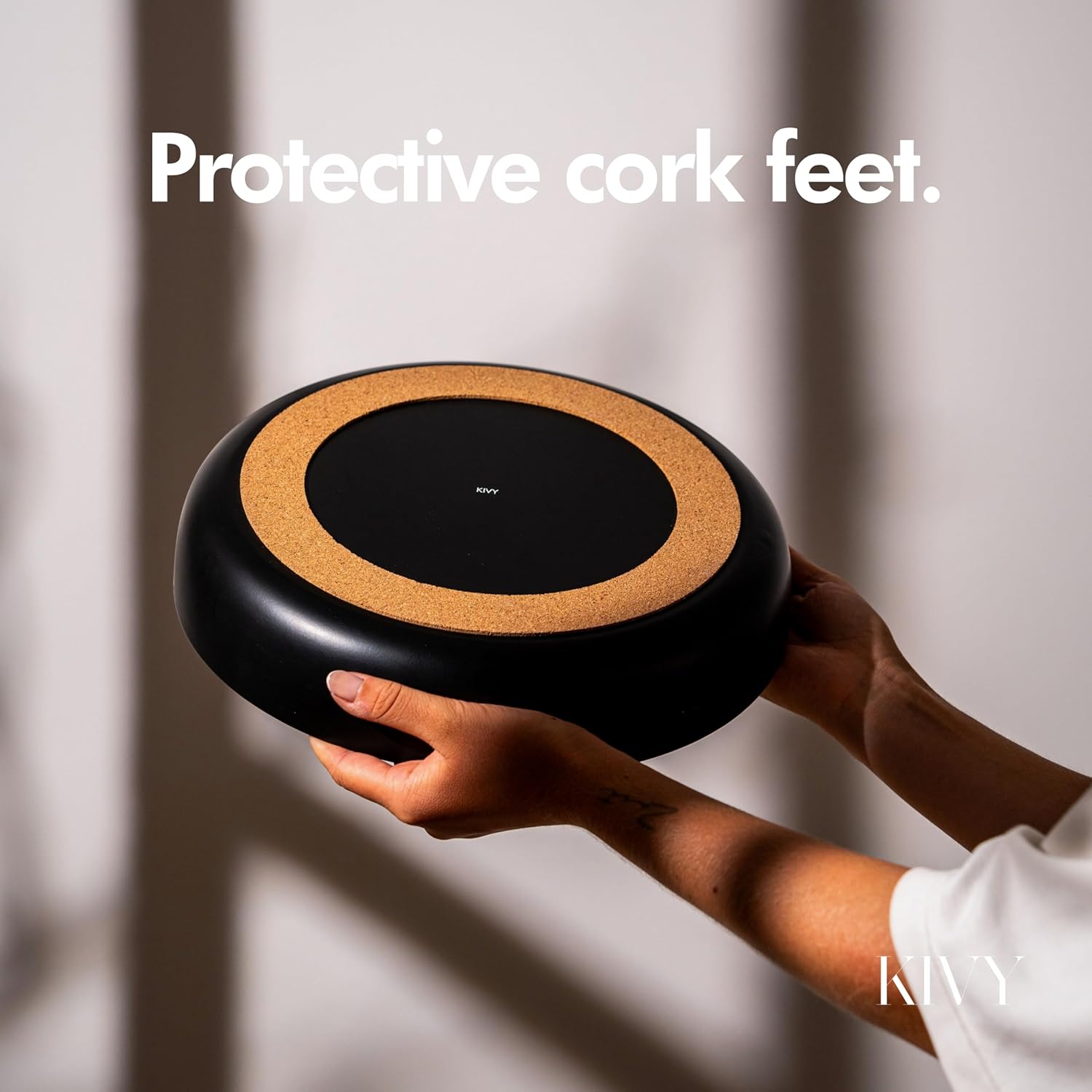 • PREMIUM MATERIALS - Made from 100% solid concrete, this concrete fruit bowl boasts a smooth surface & integrated anti-slip cork foot. Its robust build and modern design make it a standout piece in your home decor.