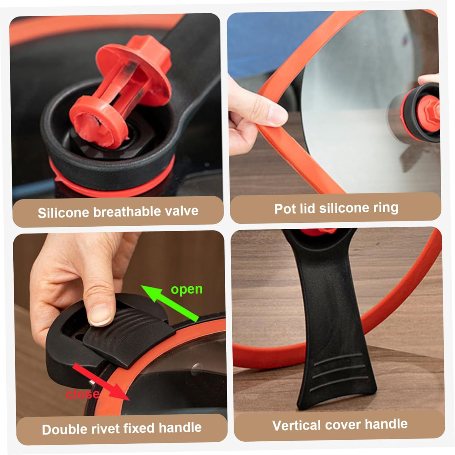 • Ergonomic Heat-Resistant Handles: Crafted with bakelite anti-scalding material, the handles offer a secure, heat-insulated grip, ensuring safe handling and comfortable cooking every time.