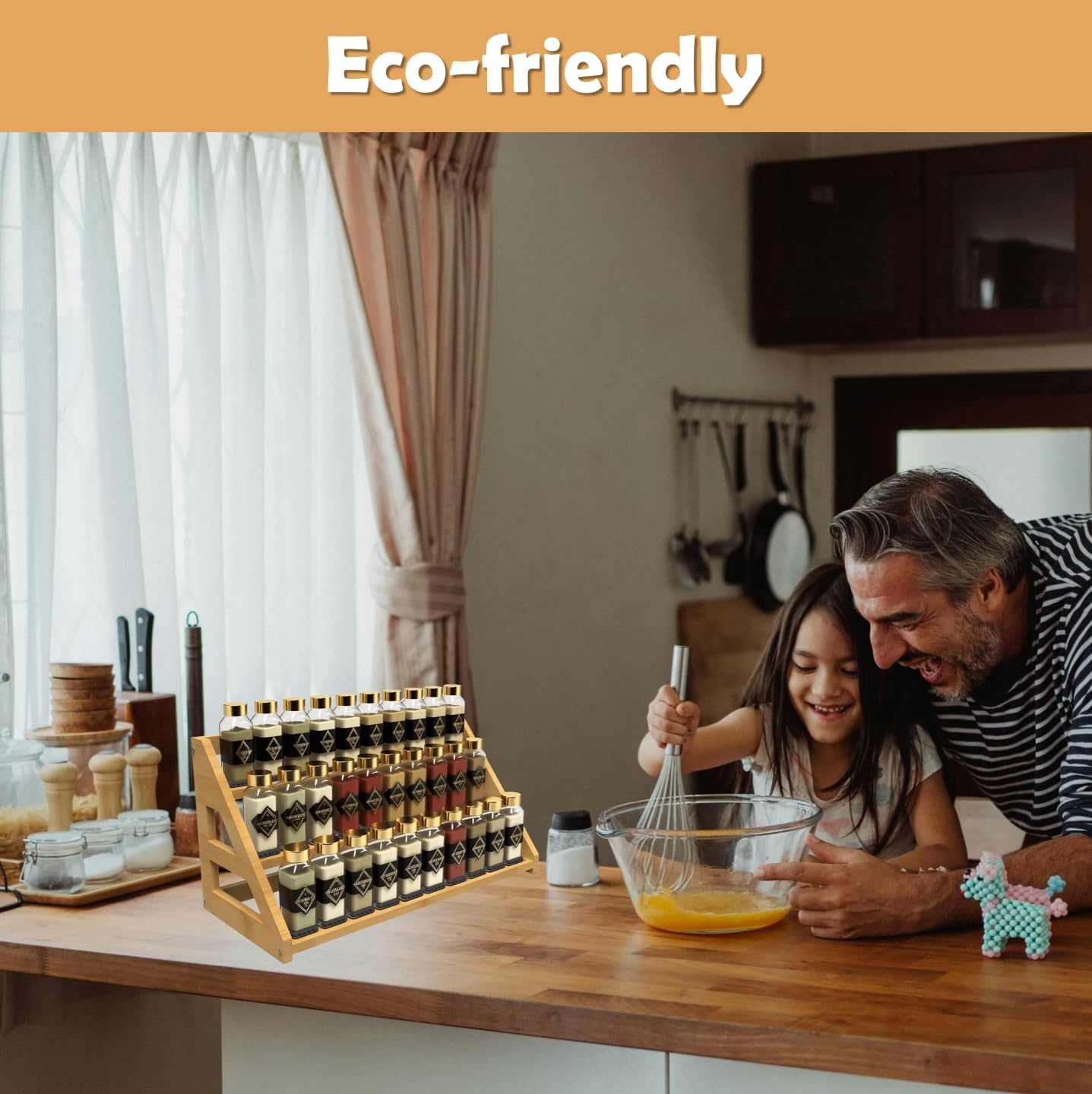 Bamboo Spice Rack: Large Spice Shelf for Kitchen Countertop Pantry Cabinet Organizer, Holds 24 Spice Jars (2.1")