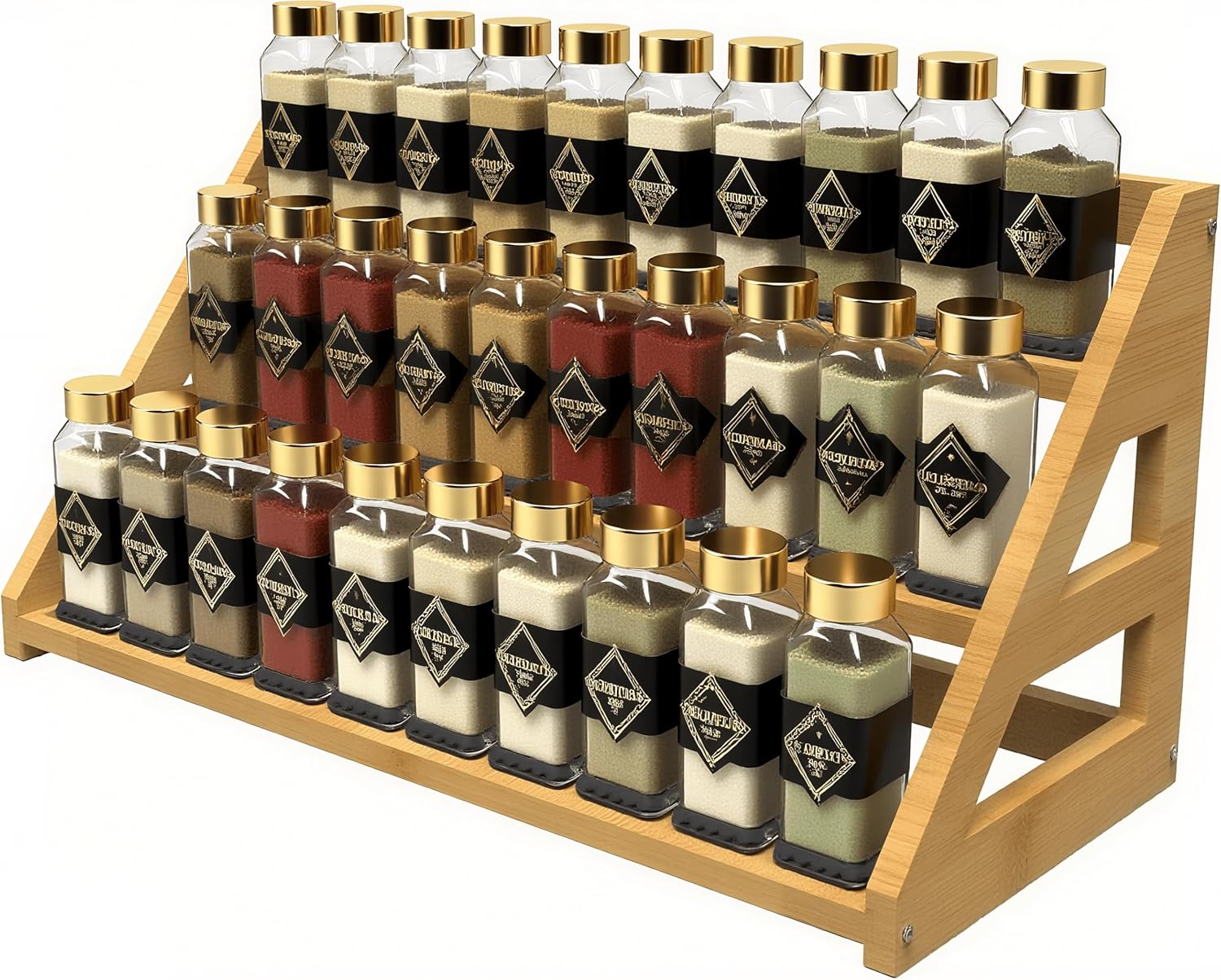 • Space Saving Design: 3-tiered spice rack maximizes vertical storage space in your kitchen cabinet or countertop, allowing organized storage of spices jars and seasoning jars