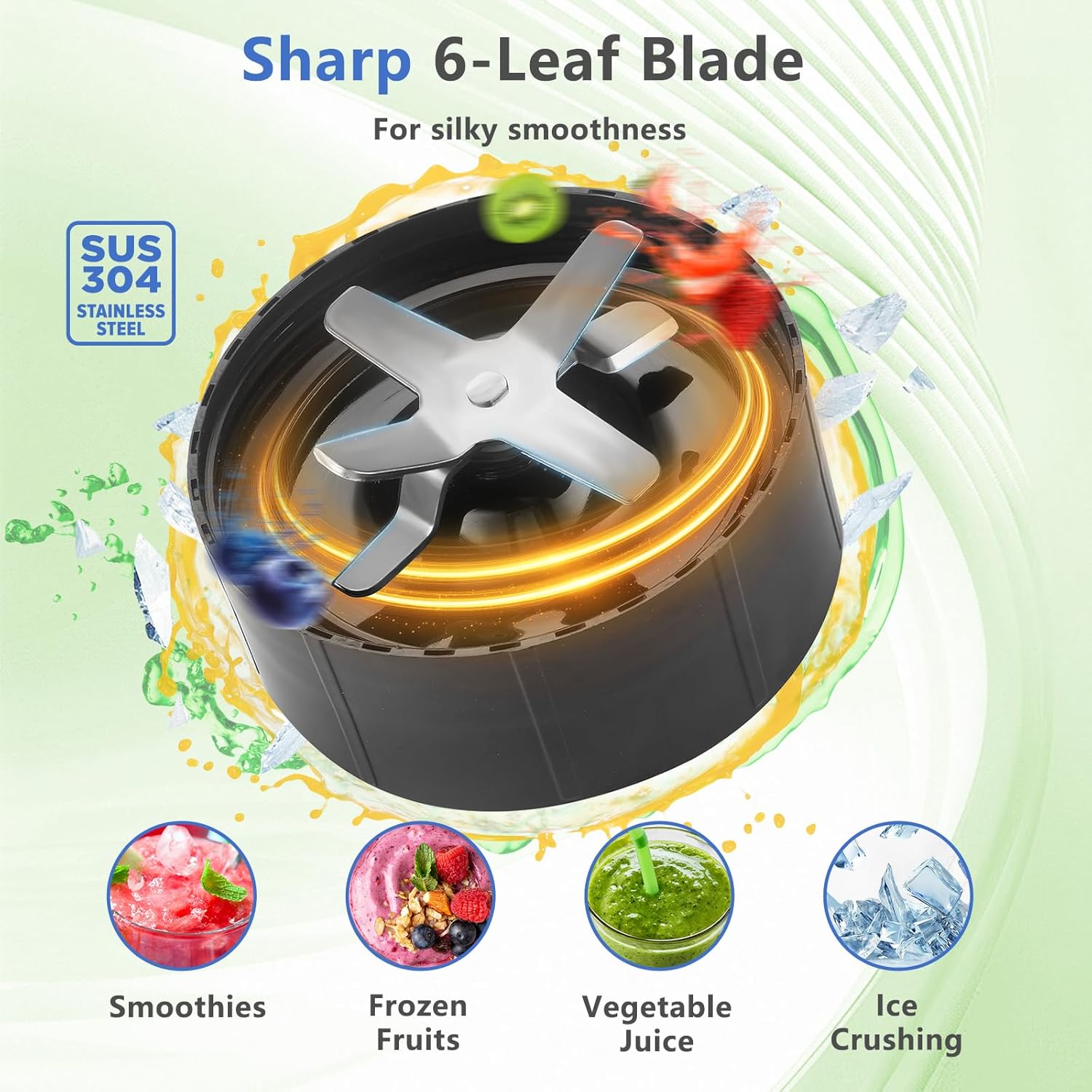 • Versatile Blending: This smoothie blender features 6-leaf blade that effortlessly crushes tough ingredients like ice and frozen fruits. Whether making smoothies, milkshakes, sauces, or baby food, enjoy perfectly smooth consistency every time with ease. Forged from high-performance stainless steel, the blades deliver exceptional durability for long-lasting use.