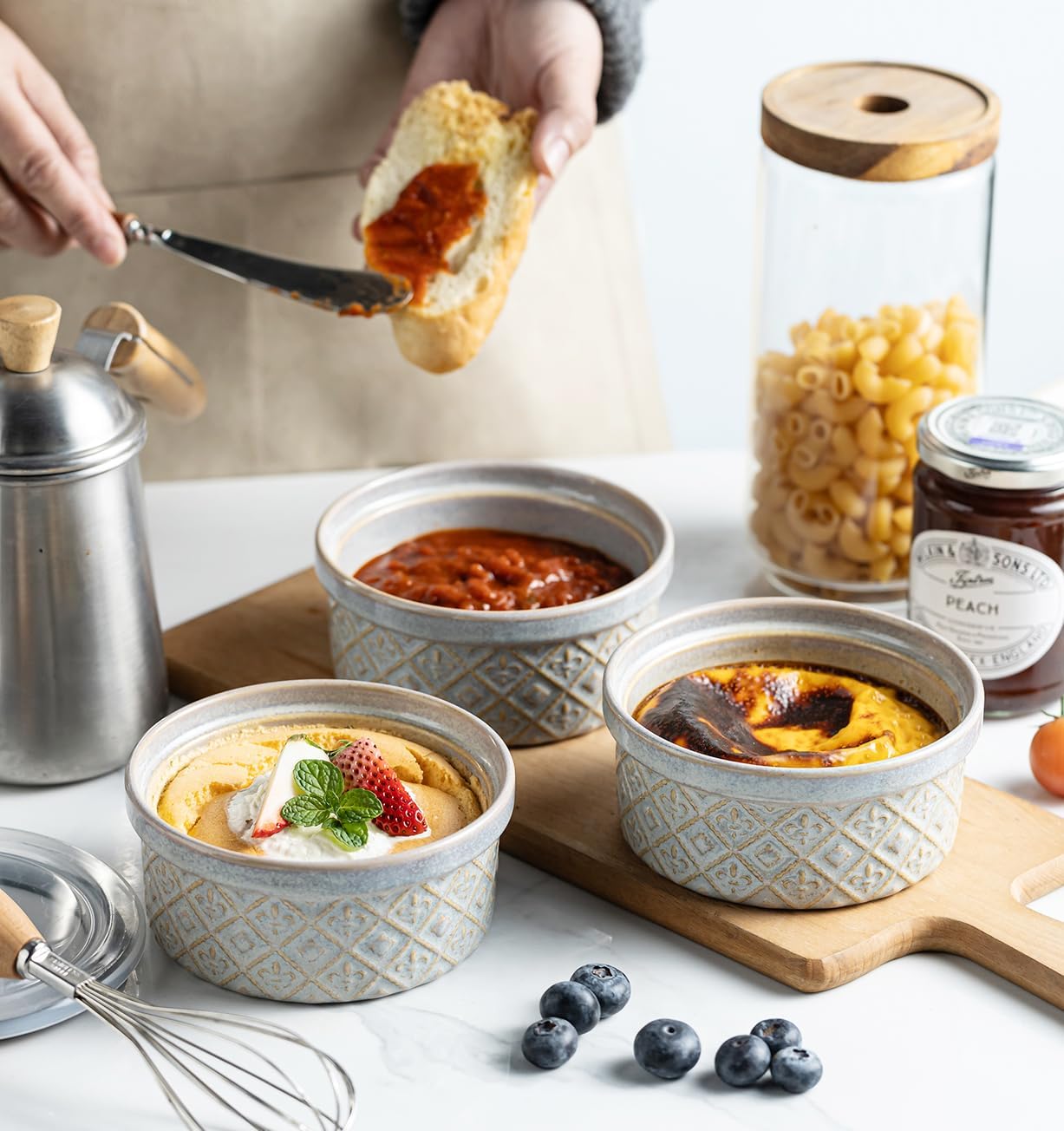 • Elegant Ceramic Design: These ceramic mixing bowls with lids feature beautifully embossed patterns that not only elevate the aesthetic appeal of your kitchen but also ensure long-lasting durability. The elegant design makes them suitable for both cooking and serving, making any meal feel special
