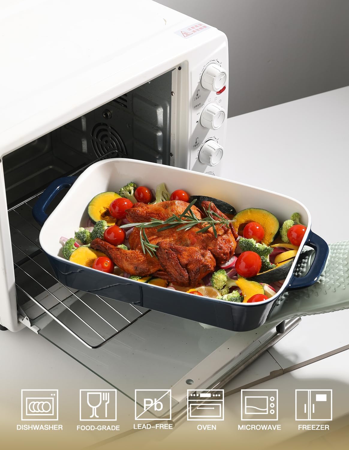 Sweejar Ceramic Bakeware Set, 9x13 Rectangular Baking Dish for Cooking, Kitchen, Cake Dinner, Banquet and Daily Use, Casserole Dishes for Oven Porcelain Baking Pans(Navy)