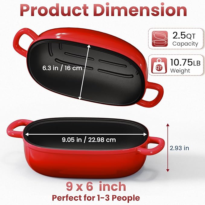 Cast Iron Dutch Bread Oven - 2.5QT Dutch Oven for Sourdough Bread Baking, Cast Iron Bread Loaf Pan with Lid, Easy Homemade Sourdough Dutch Oven, Blue Oval Bread Baking Pan, Gift for Family & Baker,Red