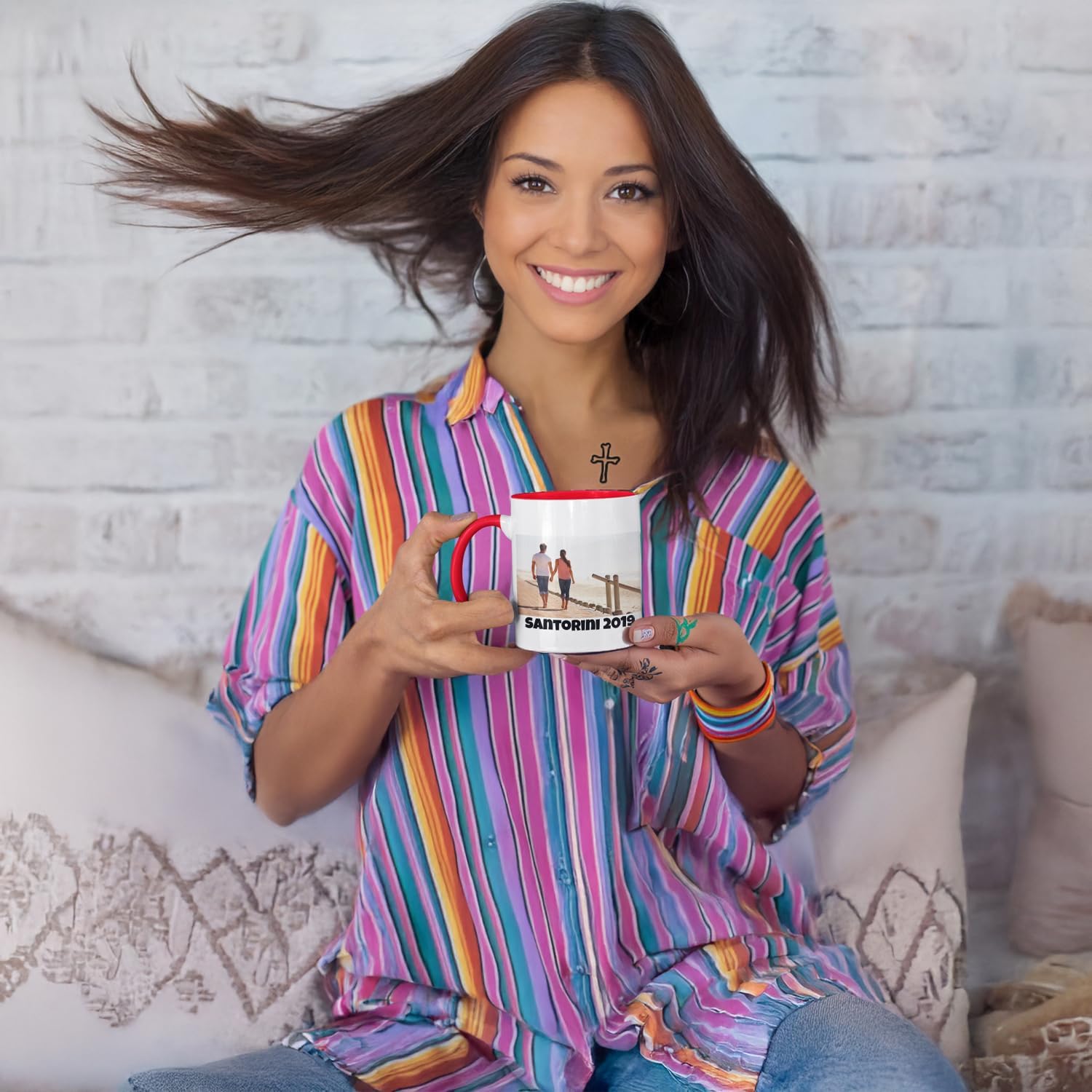 Personalized Coffee Mug | Custom Photo, Text, or Logo Cup (11oz, Red Rim, Inner, and Handle) |Dishwasher & Microwave Safe |Unique Gift for Men & Women –Taza Personalizada