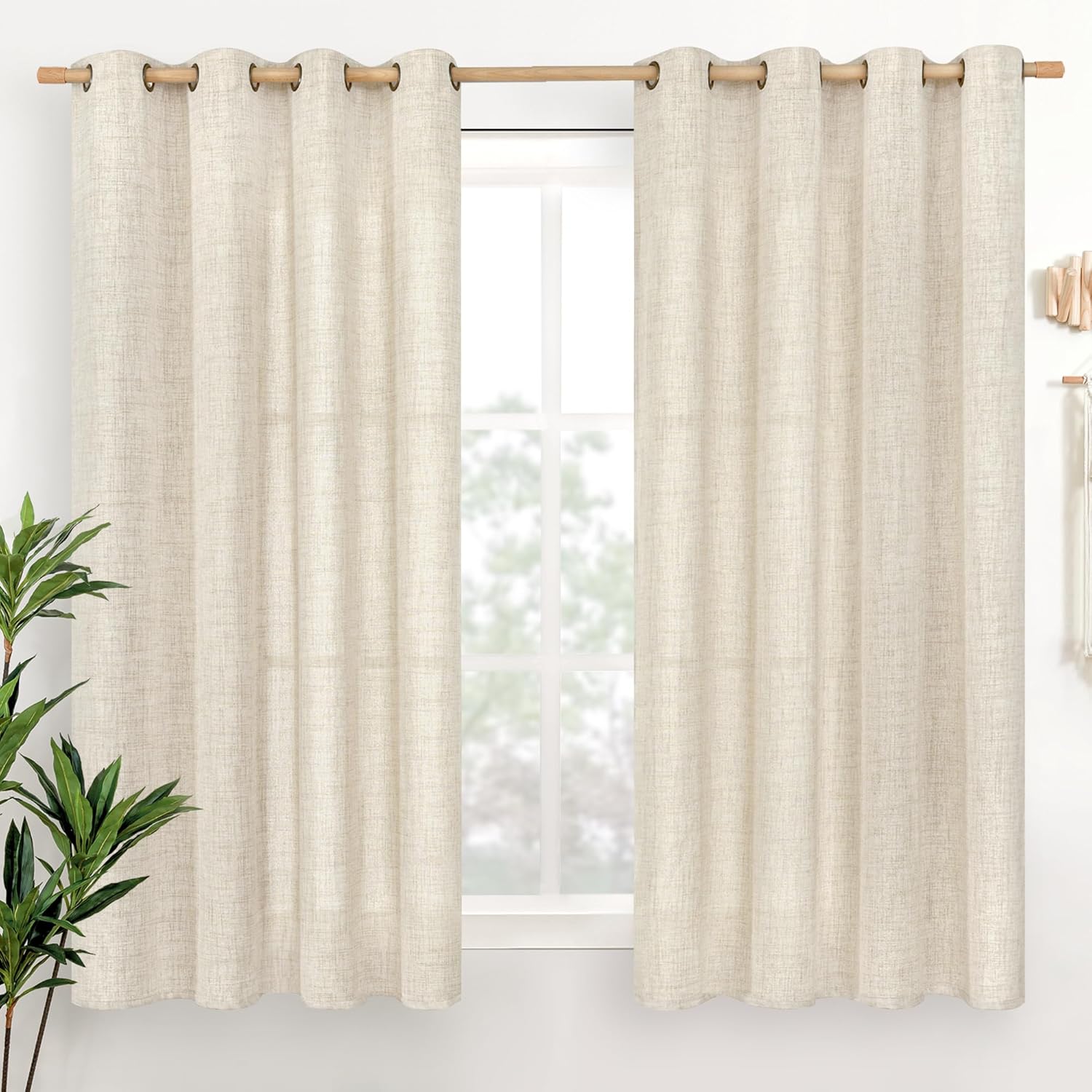 YoungsTex Linen Curtains 54 Inches Long for Kitchen, Bronze Grommet Textured Window Drapes Privacy Light Filtering for Bedroom Bathroom Decorative, 52 x 54 Inch, 2 Panels
