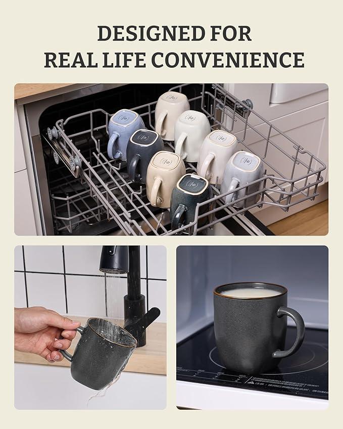 • 【Dishwasher and Microwave Safe】 Famiware Stoneware coffee cups for the kitchen are made of premium stoneware. Each plate and bowl is dishwasher and microwave safe