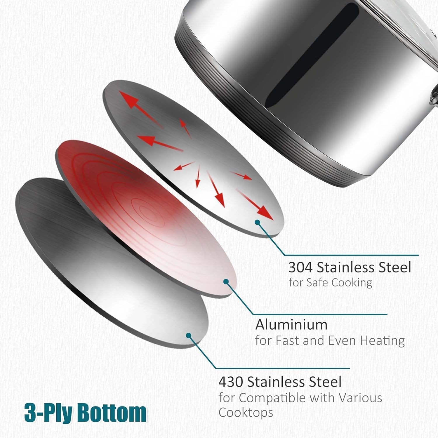 • Fast & Even Heating - Features a thick encapsulated bottom for superior heat distribution on gas, electric, and induction stoves. The tempered glass lid lets you monitor food without lifting, while the steamer’s anti-slip rim ensures stability during use