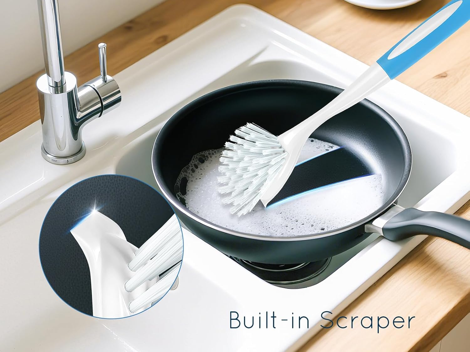 • Choose Your Strength – Use stiff bristles for grease and baked-on messes, firm bristles for nonstick and daily use