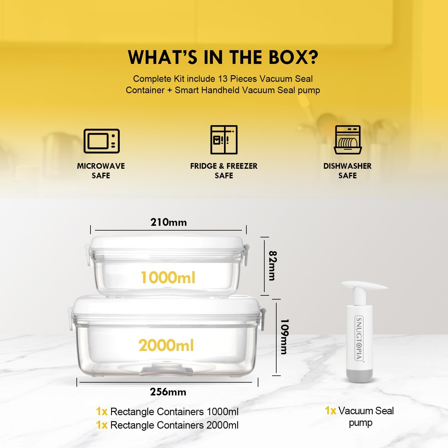 Vacuum Seal Food Storage Containers Set for Meal Pre, Snack, Veigges, Fruits - BPA-Free Kitchen Organizers with Lids, Suitable as Lunch box, Fridge & Dishwasher Safe - 1L+2L