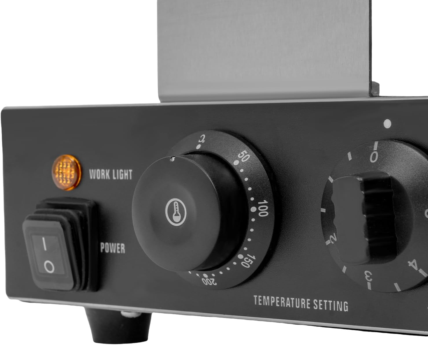 • 🥞[Temperature & Time Control] The temperature control knob gives you the freedom to customize the temperature of the baking tray between 122-572°F, while you can also use the knob to set different times for different ingredients within 0-5 minutes.