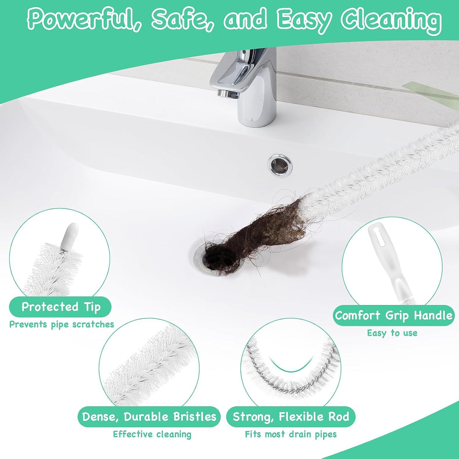 • 【20PCS Drain Clog Remover Tool Set】This all-in-one kit includes: 59” plumbing snake (2 PCS), 37” steel snake drain hair removal tool (2 PCS), 25” plastic sink snake (4 PCS), 24” grabber drain snake (1 PC), 18” sink drain cleaner tool (1 PC), and a 10-in-1 straw cleaning brush set (10 PCS). Perfect for removing hair, clearing clogs, and keeping your pipes clean—this practical set handles all your drain and tight-space cleaning needs with ease.