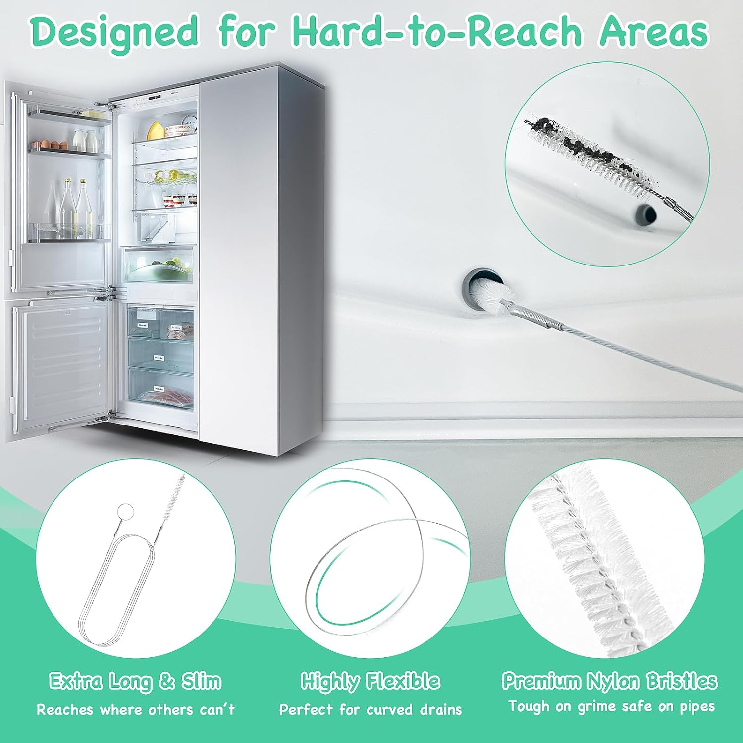 • 【Reliable Clog Removal, Effective Cleaning】This 20PCS drain hair clog remover tool set helps keep your drains clear and your home clean. The sink drain clog remover tool, shower drain snake, and toilet snake handle everyday blockages with ease—whether in the toilet, tub, or sink. The included cleaning brush is great for tight spaces like refrigerator drains, car tubing, aquarium hoses, bottles, and straws. From unclogging to detailed cleaning, this drain unclogger tool set gives you a simple, effective way to maintain flow and hygiene throughout your home.