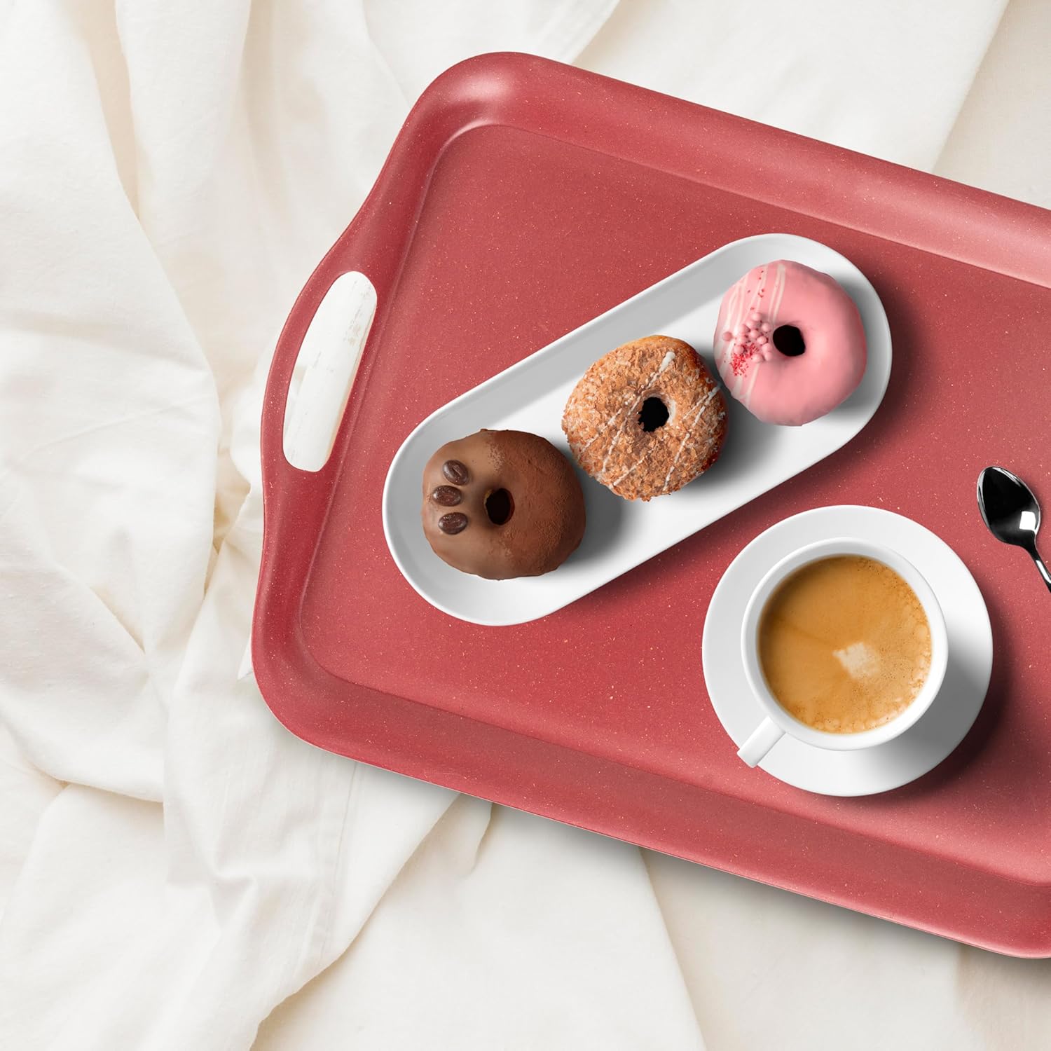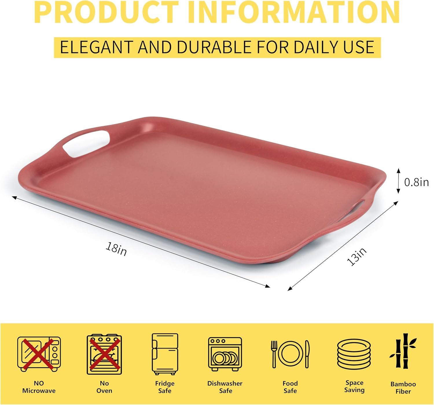 • Large Size Design: 2-Pack Large Bamboo Fiber Serving Trays with Handle