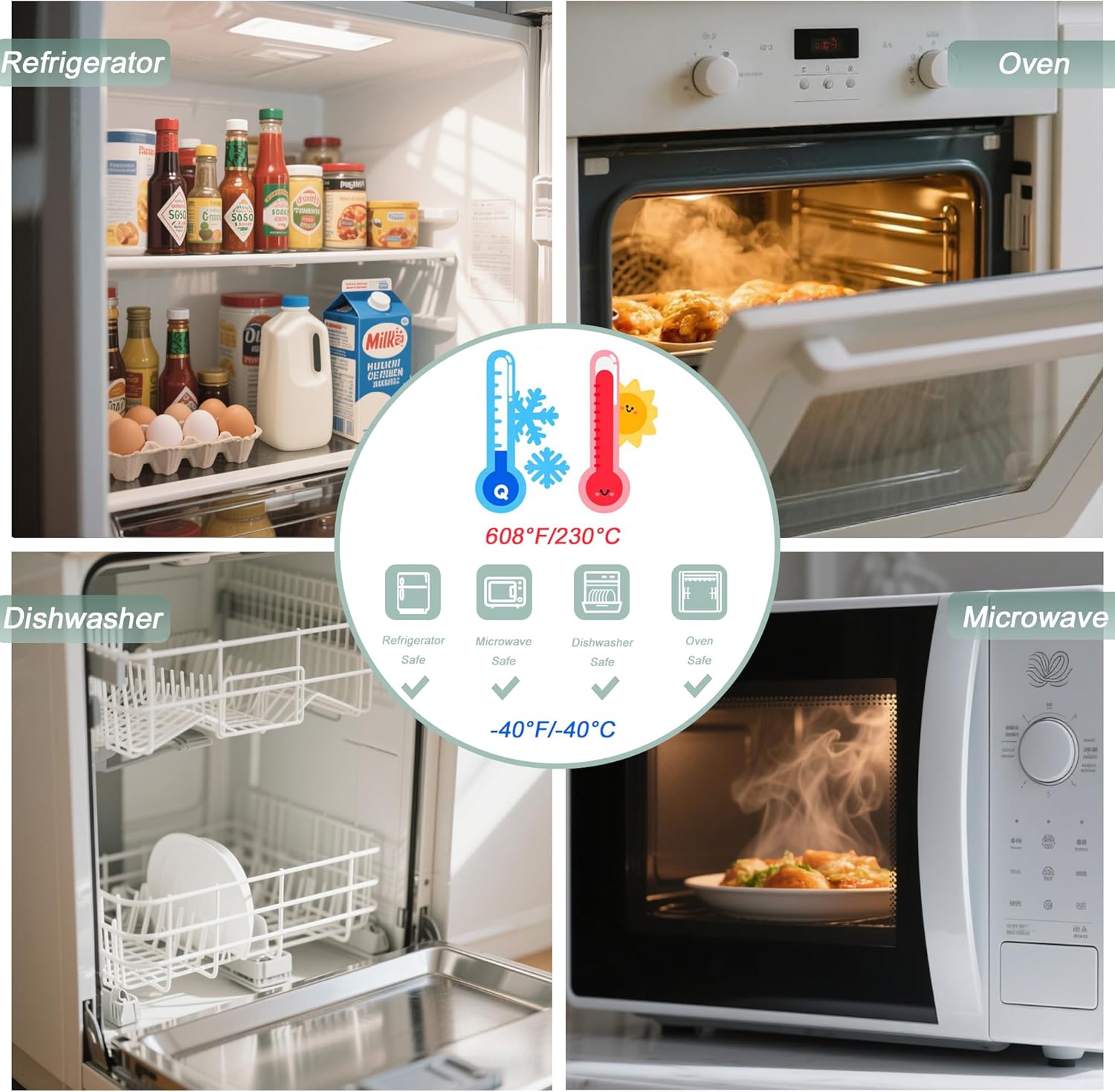 • [Food-Grade Silicone Storage Containers]: WYGLHLF food storage containers are made from premium food grade silicone, Free of BPA, PVC, Lead and Phthalate. These safe and eco-friendly containers withstand extreme temperatures (-40°F to 608°F / -40°C to 230°C) and are microwave, oven, freezer, and dishwasher-safe. The snug-fitting lids keep food fresh and prevent spills, while the flexible yet durable design ensures long-term use. Perfect for any kitchen!