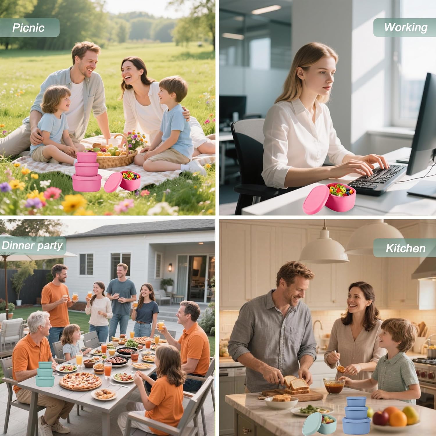 • [WIDE APPLICATIONS]: These stackable silicone lunch containers are perfect for storing sandwiches, salads, fruits, nuts, snacks, dressings, and more. Ideal for home, office, picnics, camping, and meal prep—suitable for both fresh and frozen foods. Plus, sturdy, reusable!