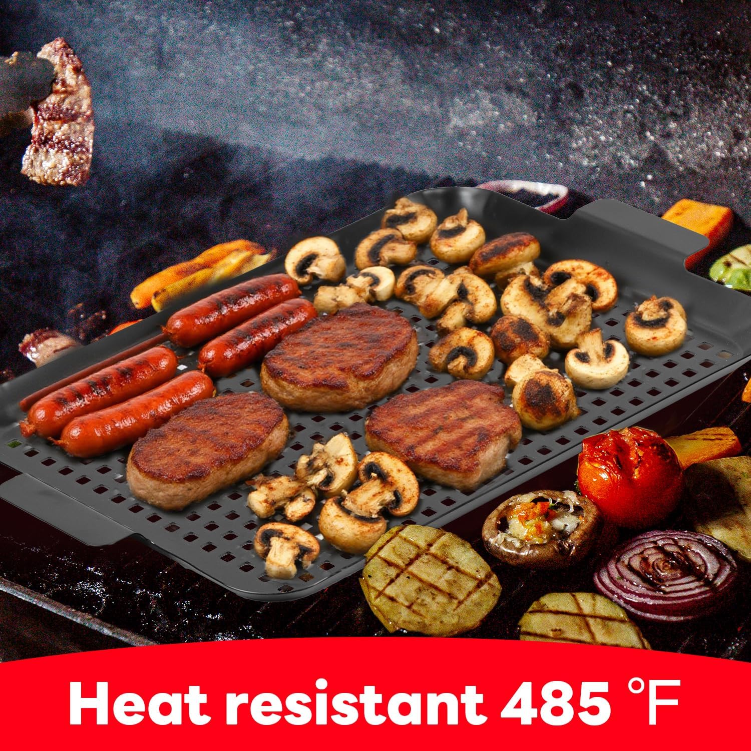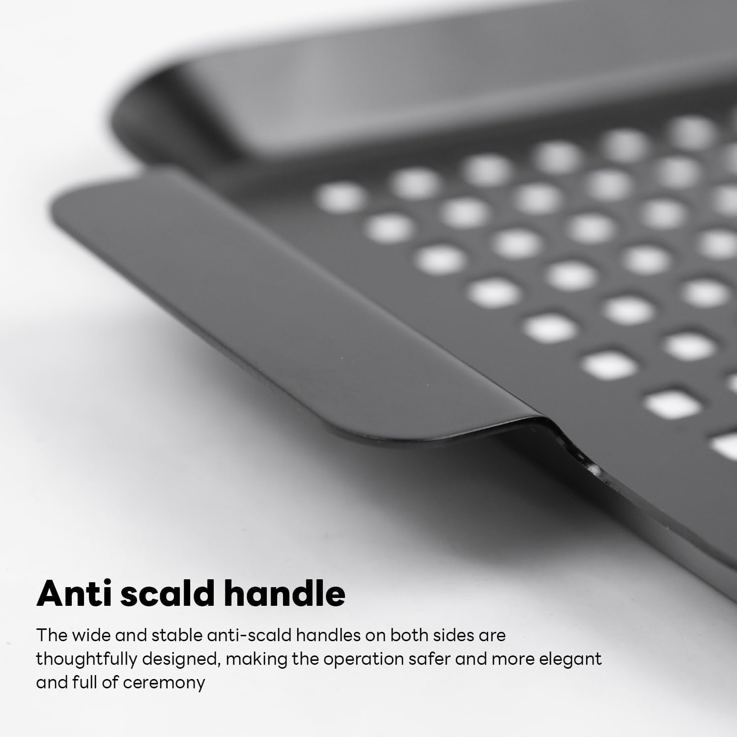 • ✭This grill pan has one tray, two perforated barbecue plates.The baking tray is easy to carry and not sharp, ensuring safety during use. Additionally, the baking tray is sturdy, durable, and long-lasting