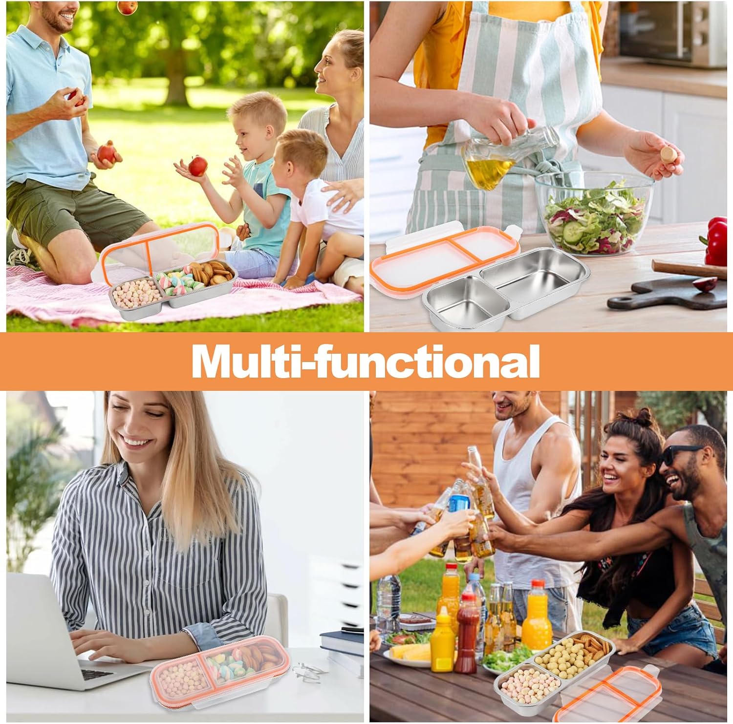 Stainless Steel Snack Containers with Lids, Double Compartment Leakproof Reusable Snack Box for Nuts, Fruits- Divided Grab & Go Container for School, Office, Travel