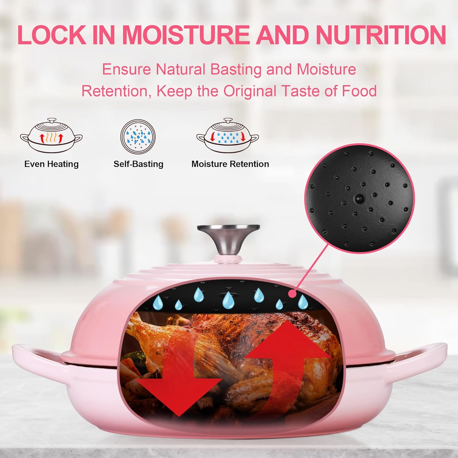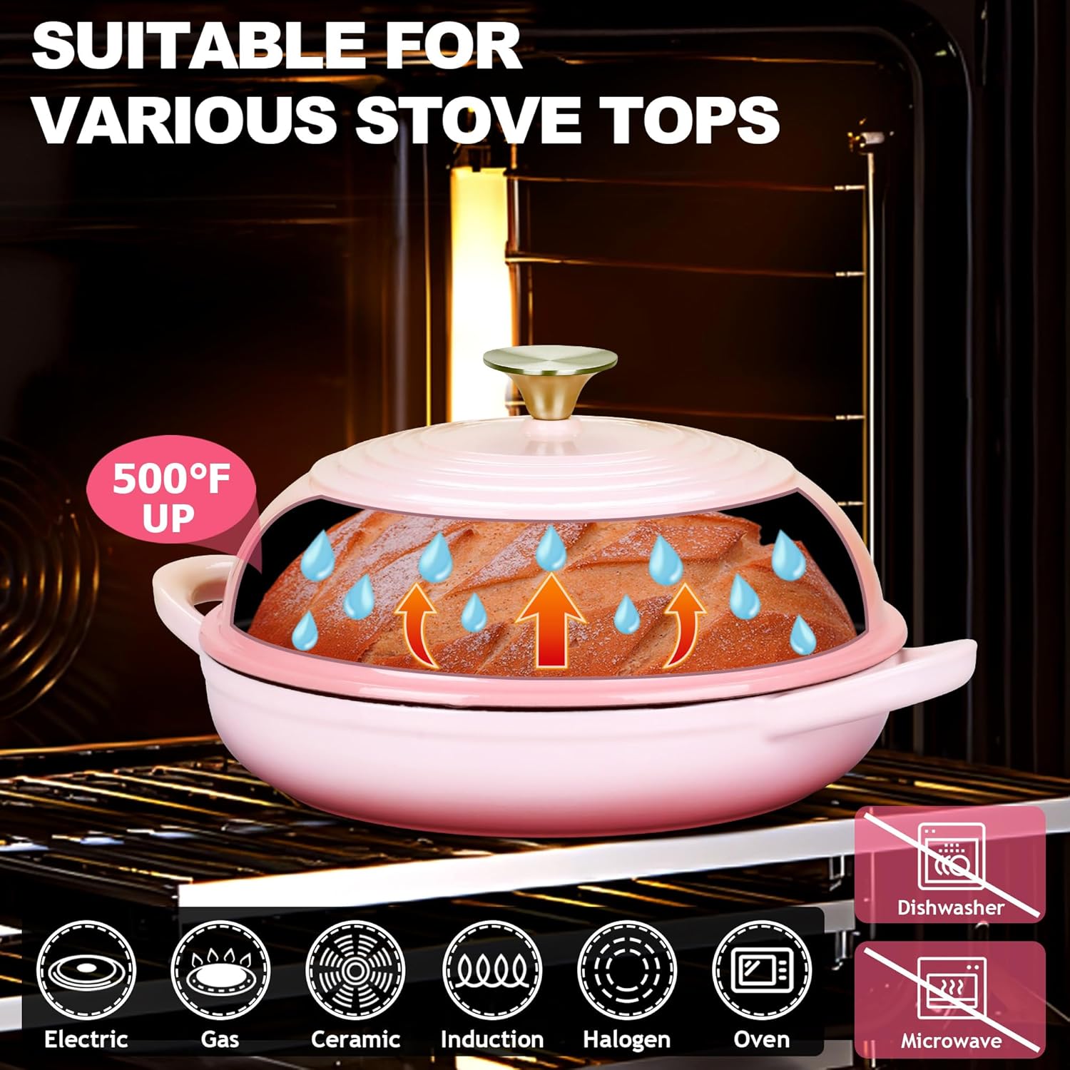 TeamFar Cast Iron Bread Dutch Oven, 6 Qt Enameled Dutch Oven Pot for Sourdough Bread Baking, with Tall Dome Lid & Round Base Pan, Self-Basting & Even-Heating, Heavy-Duty & Non-stick, Pink