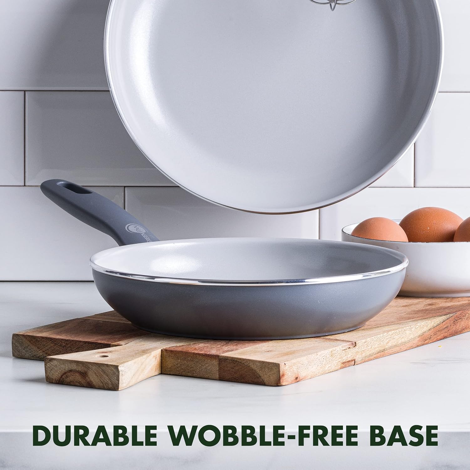 GreenPan Dover Healthy Ceramic Nonstick, 8" Frying Pan Skillet, PFAS-Free, Dishwasher Safe, Comfort Grip Handle, Grey (Pack of 4)