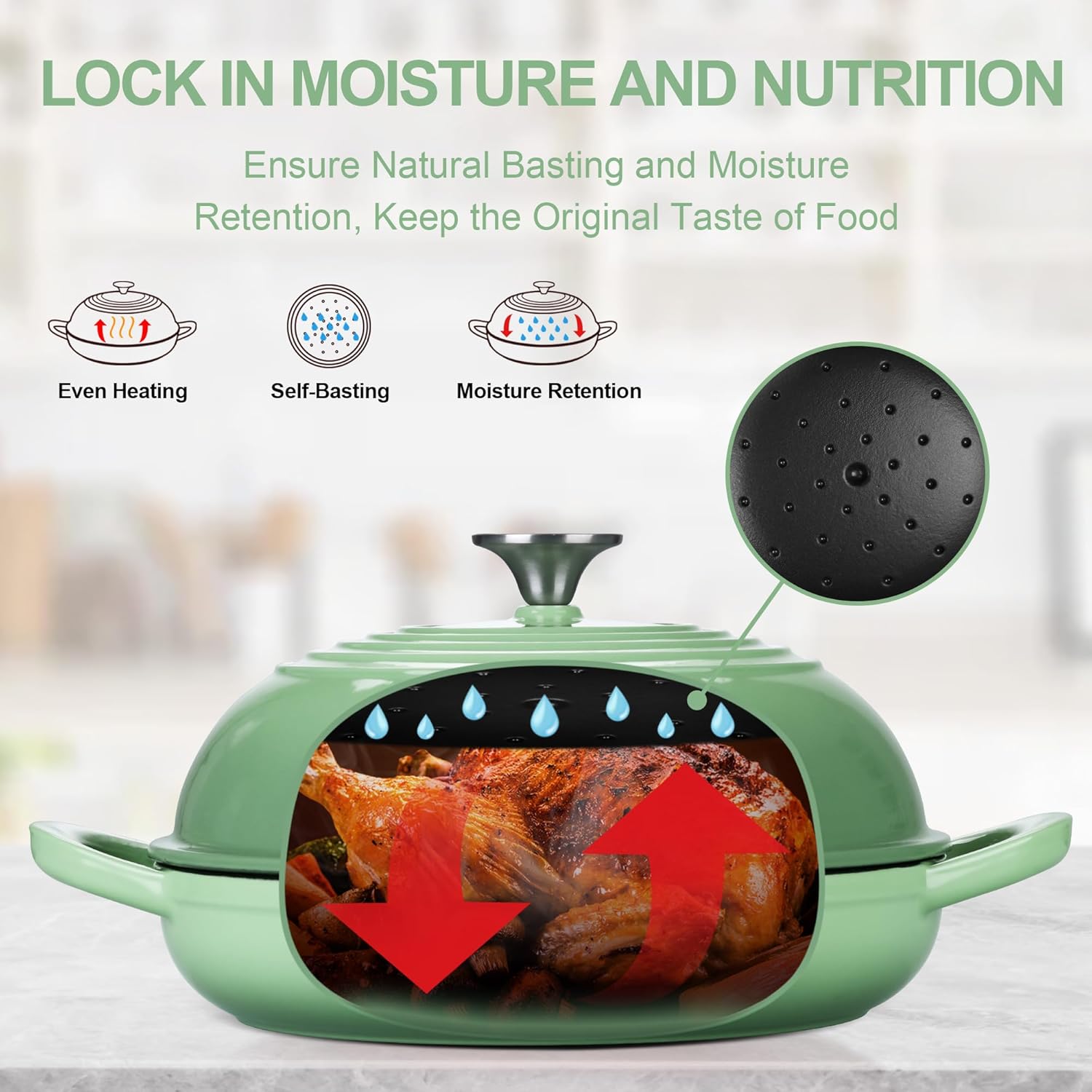 • DOME LID & SHALLOW BASE: The cast iron dutch oven with a tight-fitting dome shaped lid for the bread nicely rising, Sealing the steams and locking in moisture, Self-basting to make the bread crust golden crispy and inside soft, The shallow base easier to gently place the dough and remove the bread ensuring the shape more professional and beautiful