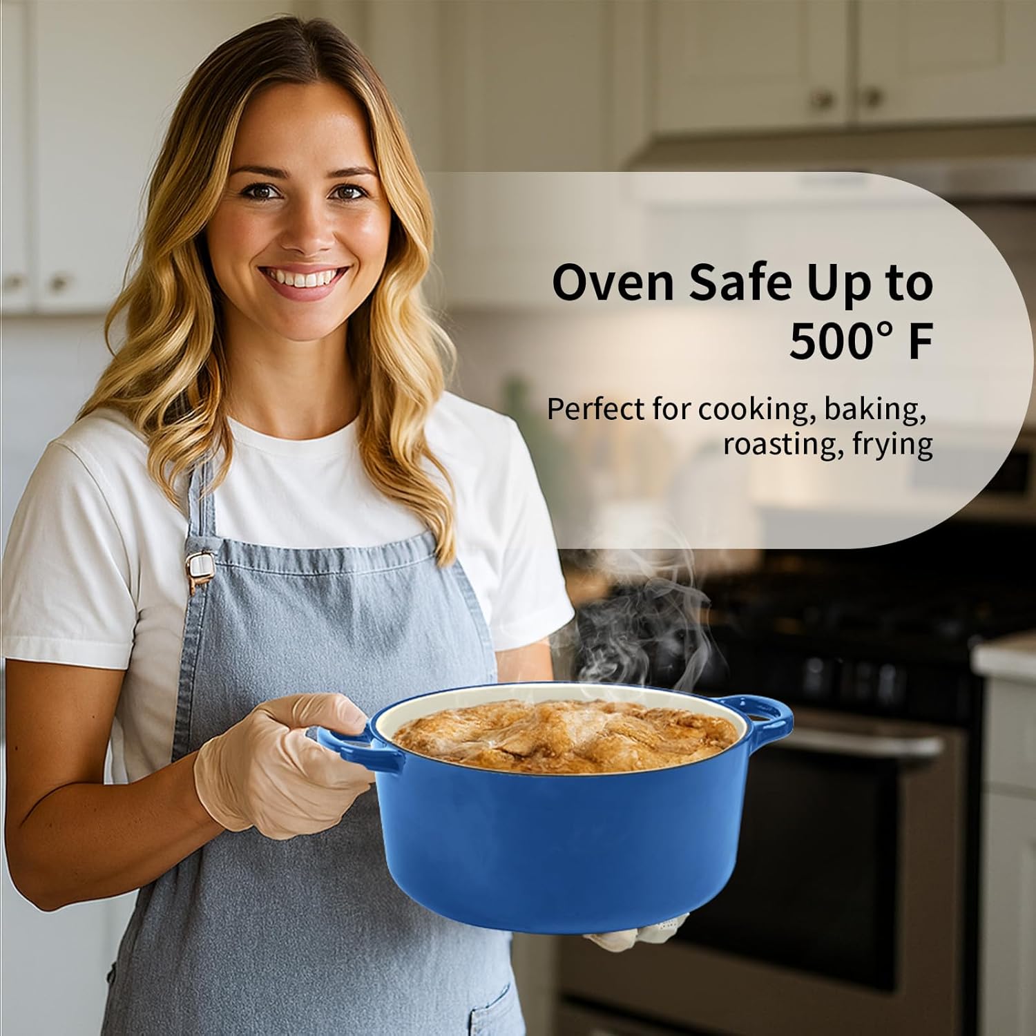 Enameled Cast Iron Dutch Oven Pot with Lid, 3.9 Quart Dutch Oven for Bread Baking, Oven Safe up to 500° F, Suitable for Bread Baking, Braising, Roasting, Stews, Blue