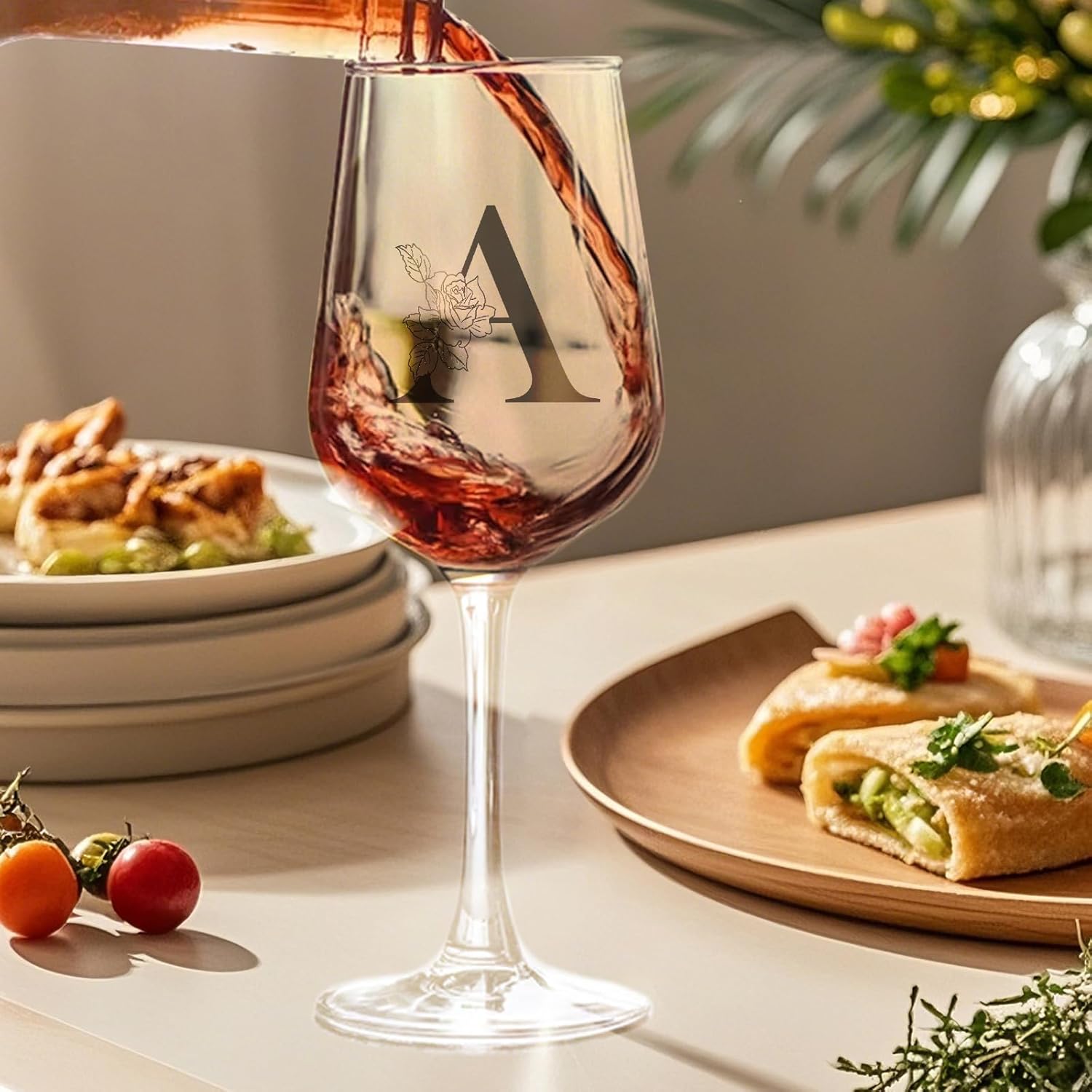 Personalized Wine Glass Gifts for Women, Monogrammed A-Z Wine Glass with Gift Box & Greeting Card, Customized Wine Glasses Initial Wine Glasses Gift for Birthday, Mothers Day for Best Friend (A)