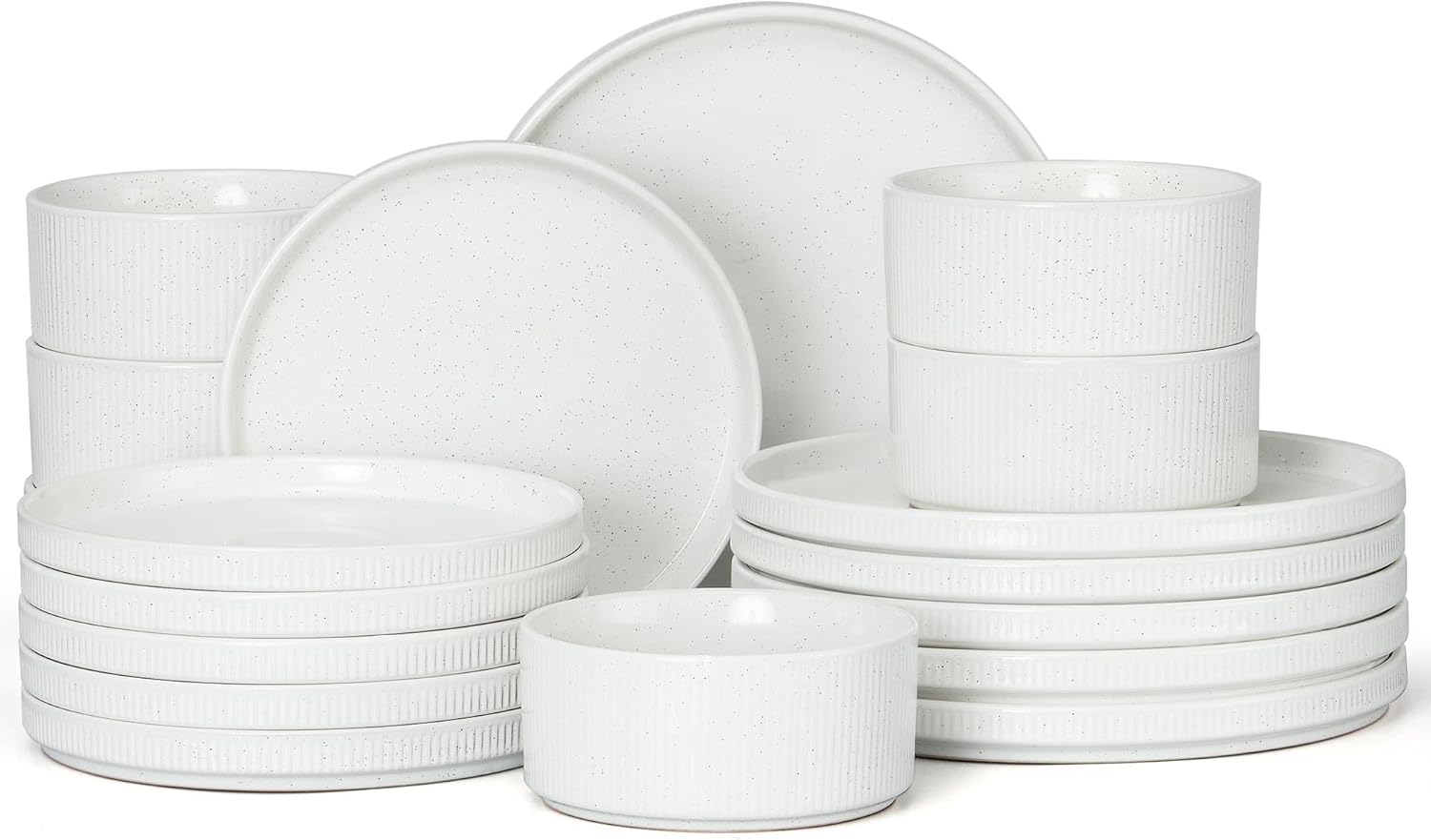 • 18-PIECE DINNERWARE SETS: Includes 10.2 in dinner plates, 8.3 in dessert plates and 5.6 in (25.5oz) cereal bowls, Elegant dish set is suitable for households and special occasions and is ideal for casual meals, parties or formal dining, Providing versatility for daily meals, Ideal for salads, pasta, soups, desserts, and more