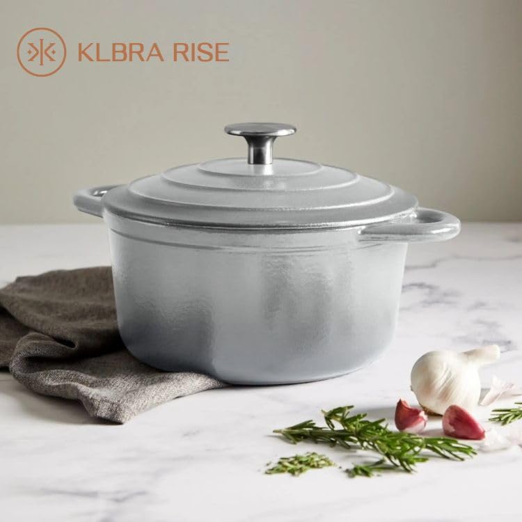Cast Iron Dutch Oven Pot with Lid – Deep Cooking Pot for Bread, Stews, Casseroles – Oven Safe Cookware, Kitchen Essential & Wedding Gift – Compatible with All Heat Sources (Gray)