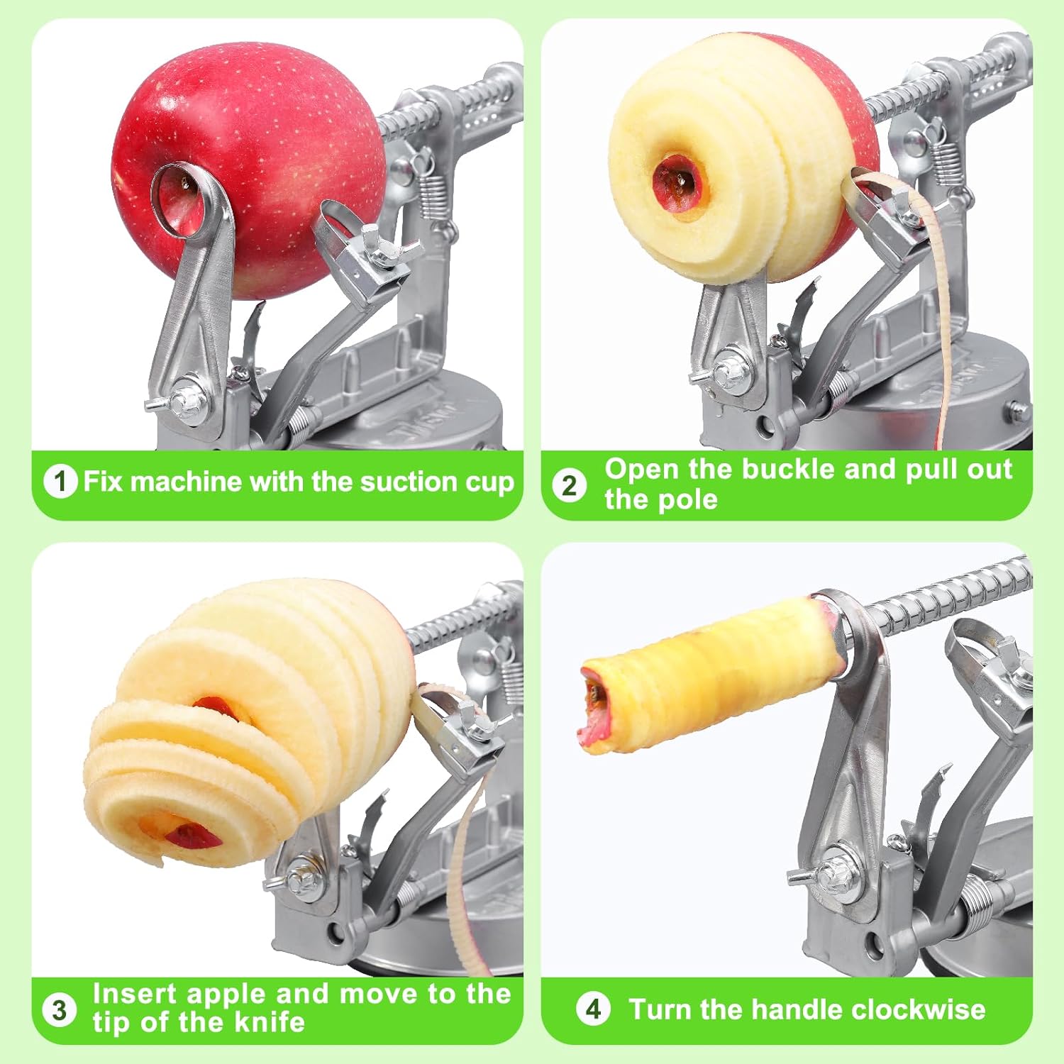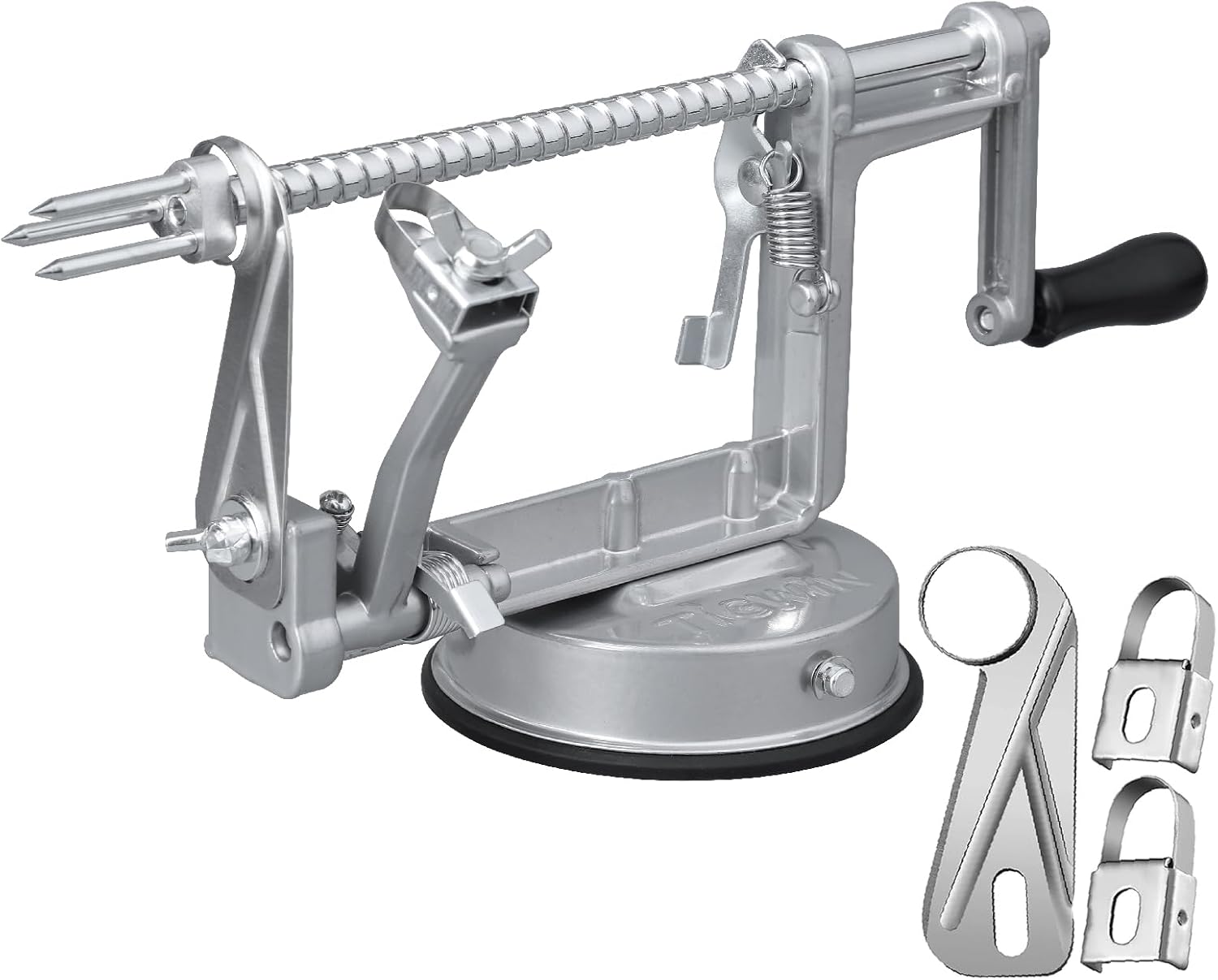 Apple Peeler Corer, Long lasting Chrome Cast Magnesium Alloy Apple Peeler Slicer Corer with Stainless Steel Blades and Powerful Suction Base for Apples and Potato(Grey)