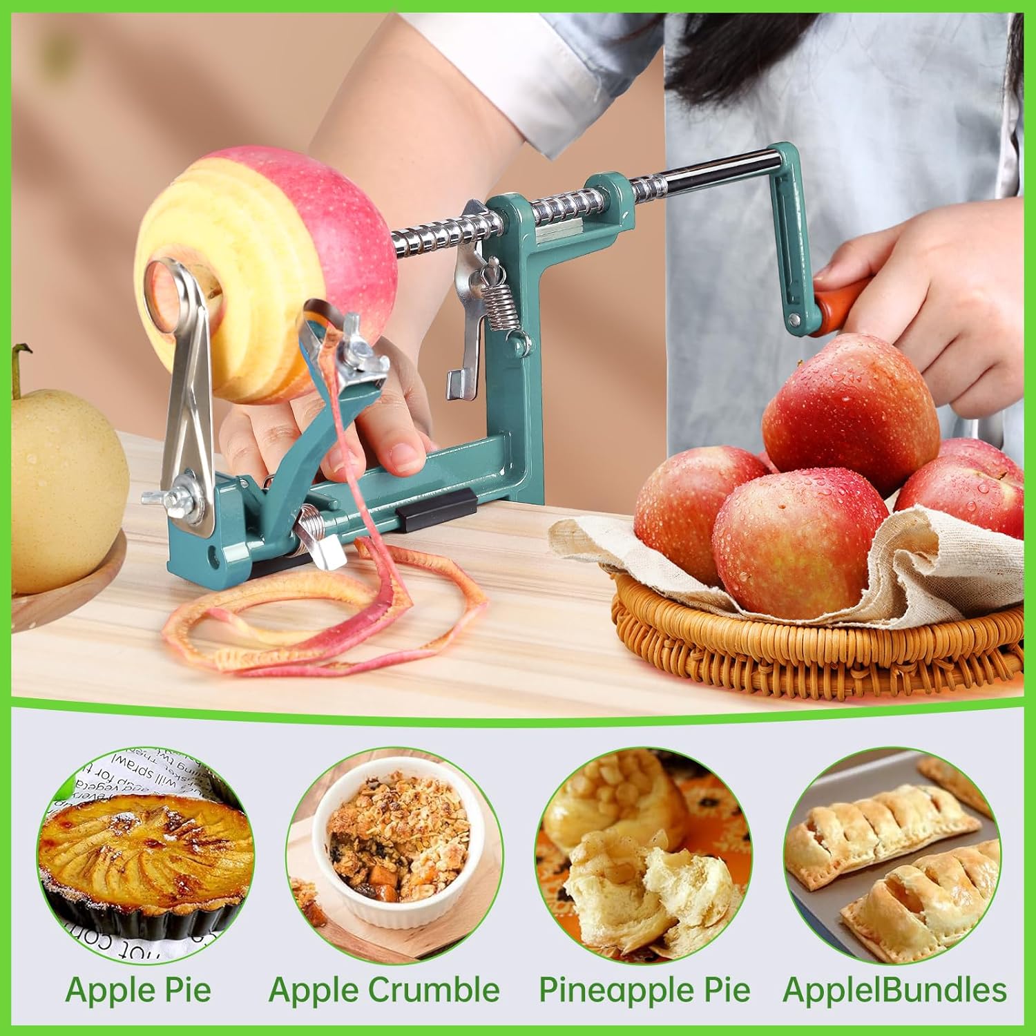 Apple Peeler Corer, Long lasting Chrome Cast Magnesium Alloy Apple Peeler Slicer Corer with Stainless Steel Blades and Powerful Clamp Base for Apples and Potato(DeepGreen)