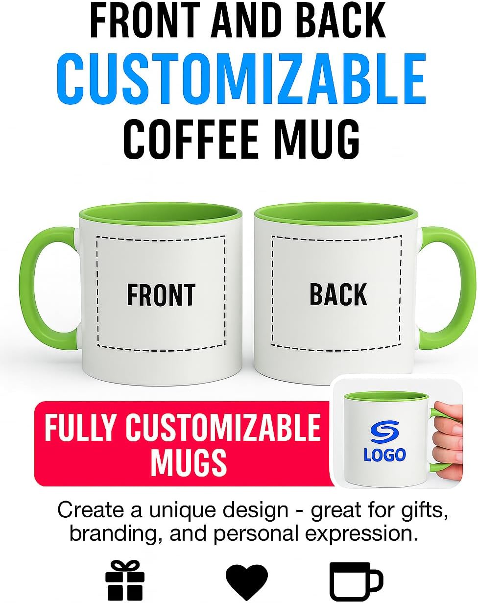• Fully Customizable – Click "Customize Now" to personalize this coffee mug with your own photos, text (like a name or special message), or even a logo. Design both the front and back of the cup independently to create a unique piece that showcases your creativity. Make your own mug that perfectly reflects your style or celebrates a loved one in a truly personal way.