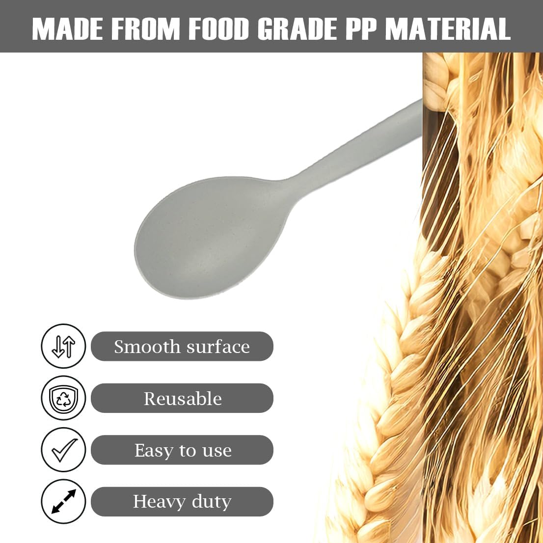 8 Pack 10" Large Reusable Plastic Wheat Straw Serving Spoon Set, 4 Serving Spoons & 4 Slotted Spoons, Kitchen Mixing Serving Spoon for Buffet Chafing Dish Catering (Gray Ombre/Not for Cooking)