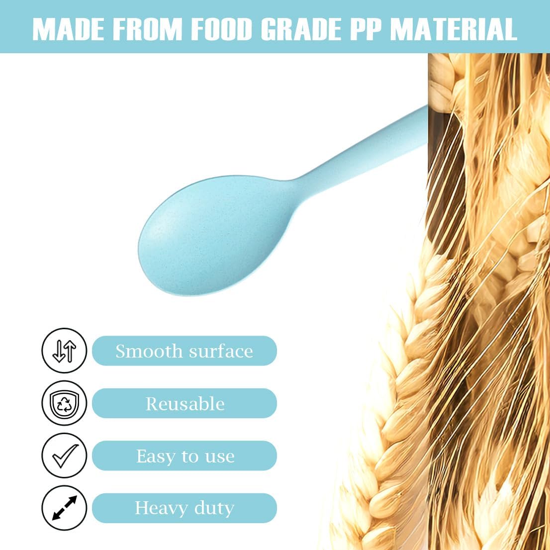 8 Pack 10" Large Reusable Plastic Wheat Straw Serving Spoon Set, 4 Serving Spoons & 4 Slotted Spoons, Kitchen Mixing Serving Spoon for Buffet Chafing Dish Catering (Ocean, Not for Cooking)