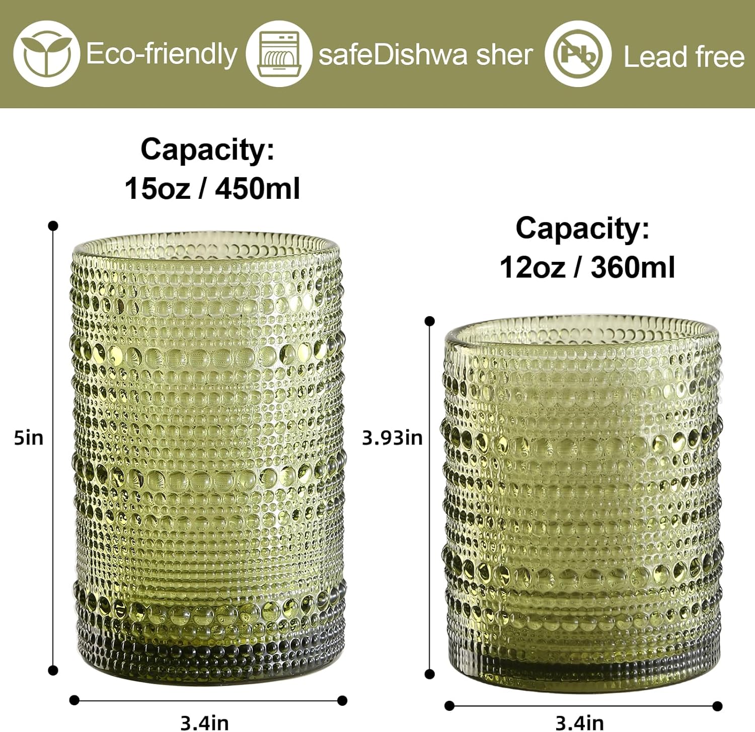 • PACKAGE DETAILS: includes 4 pcs 12oz vintage hobnail drinking glasses,4 pcs 15oz vintage hobnail drinking glasses,4 pcs glass straws, 1 pcs straw cleaning brush, 1 pcs cup cleaning brush
