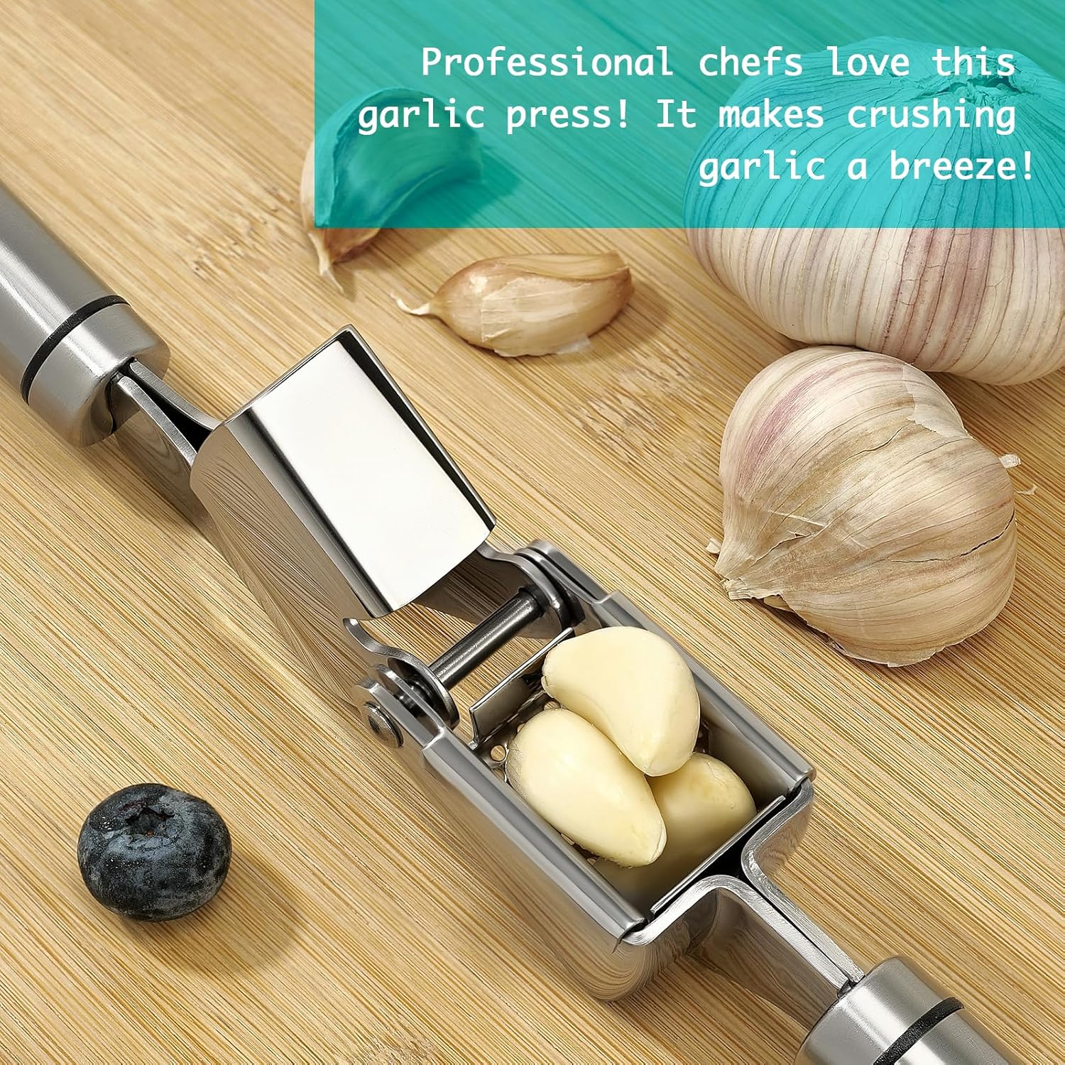 KULUNER Professional Garlic Press,Practical Garlic Peeler That Requires No Peeling,Minced Garlic Machine Crushes Garlic Into Fine Paste,Made of 304 Stainless Steel,Rust-Resistant and Easy to Clean