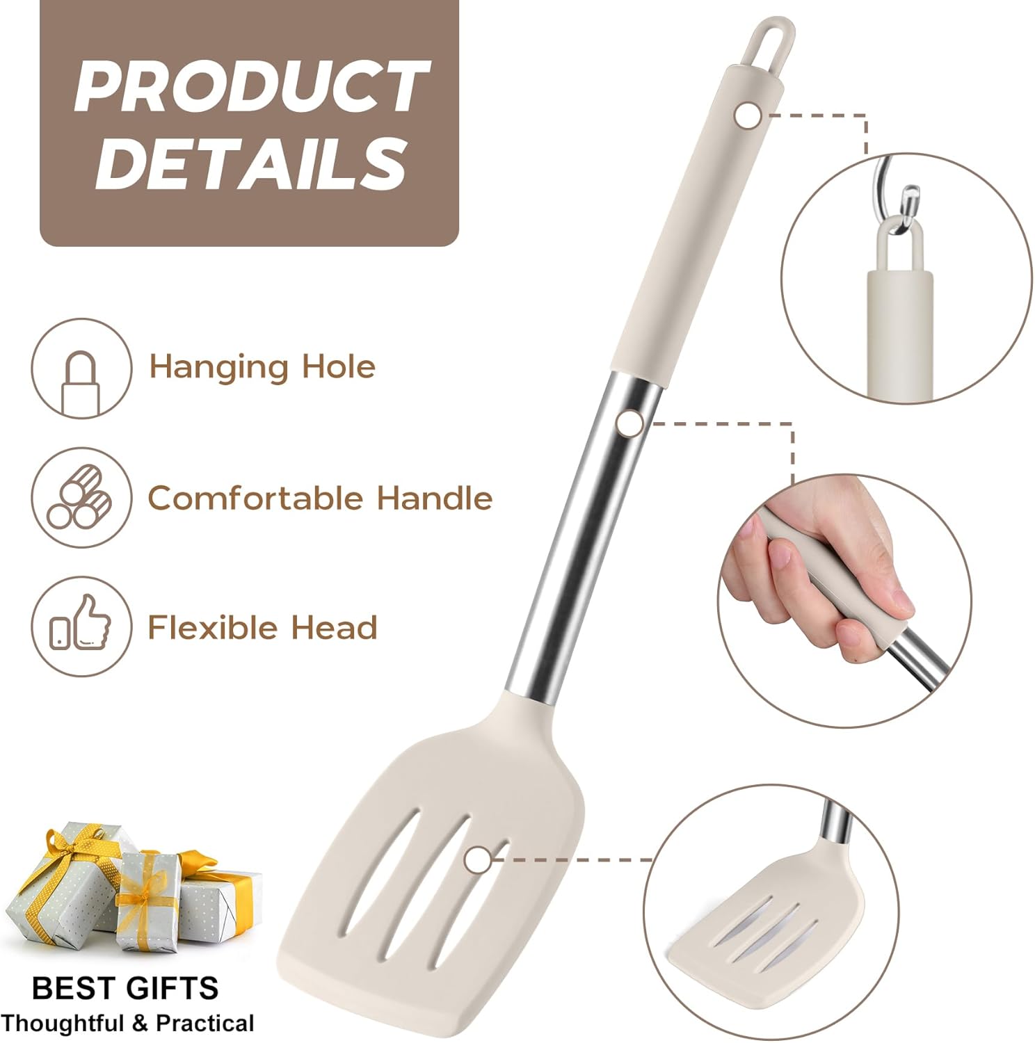 • Easy Store & Dishwasher Safe: our kitchen utensil handles have hanging holes for easy hanging and dry, also can store in the utensil holder/drawers to keep your kitchen neat and tidy, smooth silicone surface does not stick to food, easy to clean and dishwasher safe